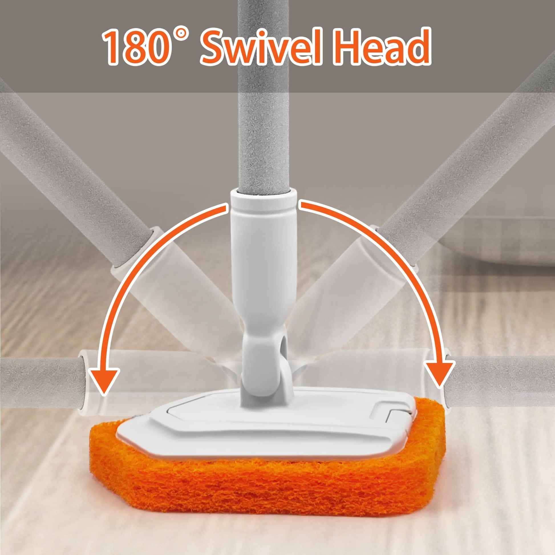 180-DEGREE ROTATING BRUSH: The shower cleaning brush is equipped with a V-shaped head that can rotate 180 degrees to clean in different directions. This allows for reaching hard-to-access areas or corners to remove stains and stubborn dirt.