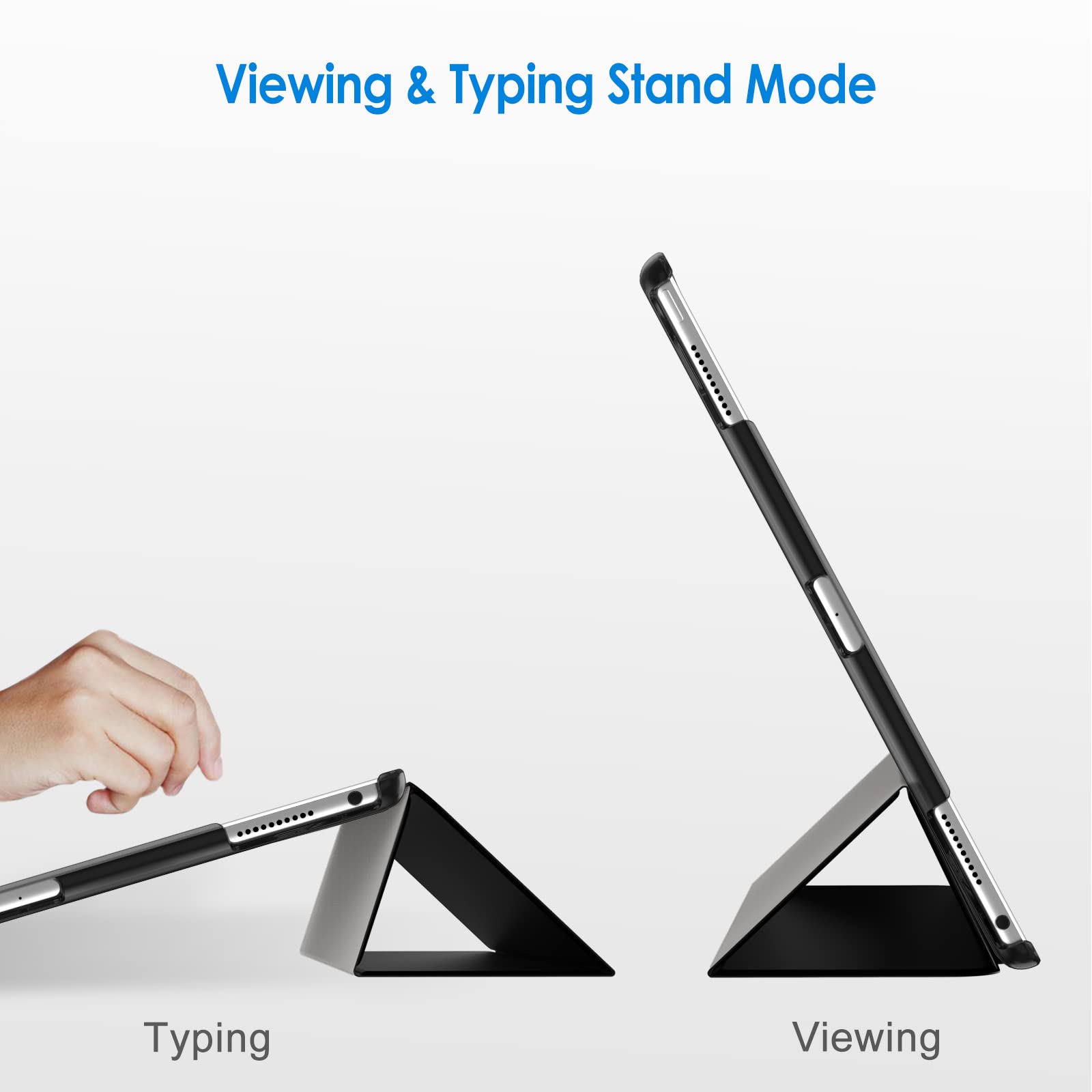 The magnetic smart cover supports automatic sleep/wake function. The triple-folded front cover can support the iPad standing for viewing and typing.