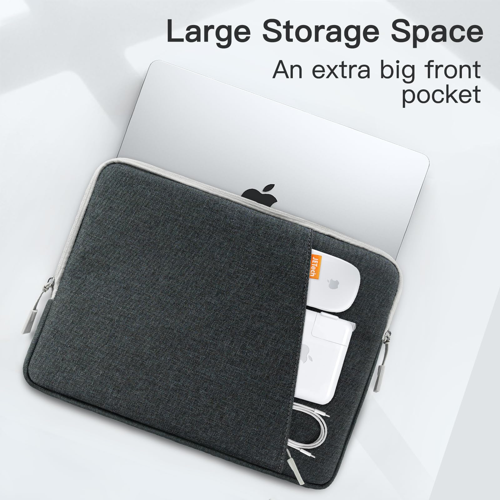 JETech Laptop Sleeve for 13.3-inch MacBook Air/Pro, 14-inch MacBook Pro 2021 M1, 13-13.6 inch Notebook, waterproof, shockproof, Bag with Pocket (Dark Gray)