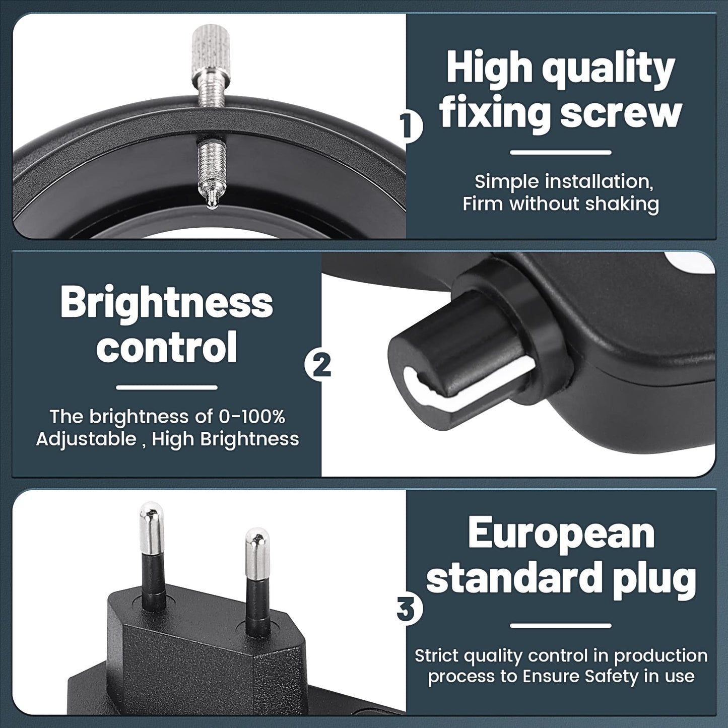 Jevina 144 LED Microscope Ring Light Ring Light 0-100% Adjustable Lamp for Microscope Ring Illumination