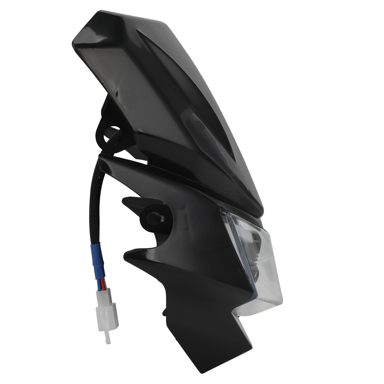 ["Motorcycle headlight for Dirt Pit Bike Dual Sport Enduro.","High-end material】Motorcycle headlight is made of PP+PC+Aluminum material, and the housing is made of high-quality, thick aluminum die-cast alloy with a good heat dissipation system.","Excellent lighting】For safer driving, this motorcycle headlight features an energy-efficient and high-quality bulb that can deliver bright light.","Durable and waterproof】Housing and lens made of tough and durable plastic, scratch-resistant, waterproof, no water inside after heavy rain. Effectively protect the turn signals from light impacts without weakening the light and not consuming lights.","After-sales guarantee】We are committed to providing excellent customer service. If you have any questions, please contact us. We will do our best to solve your problem. 100% satisfactory service for you."]