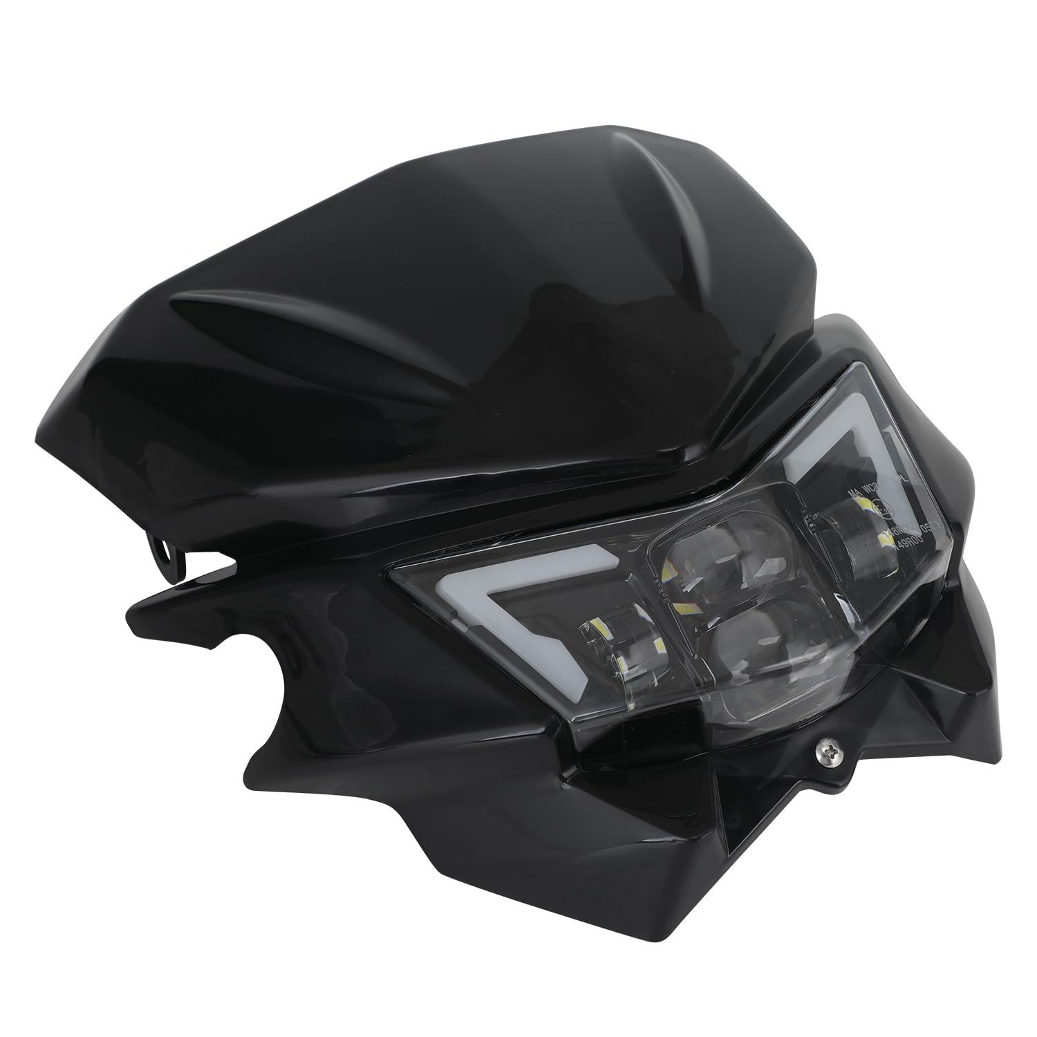 JFG RACING Motorcycle Headlight, Motorcycle Light Mask Fairing Mask Daytime Running Light Headlight Waterproof for Dirt Pit Bike Dual Sport Enduro-Black