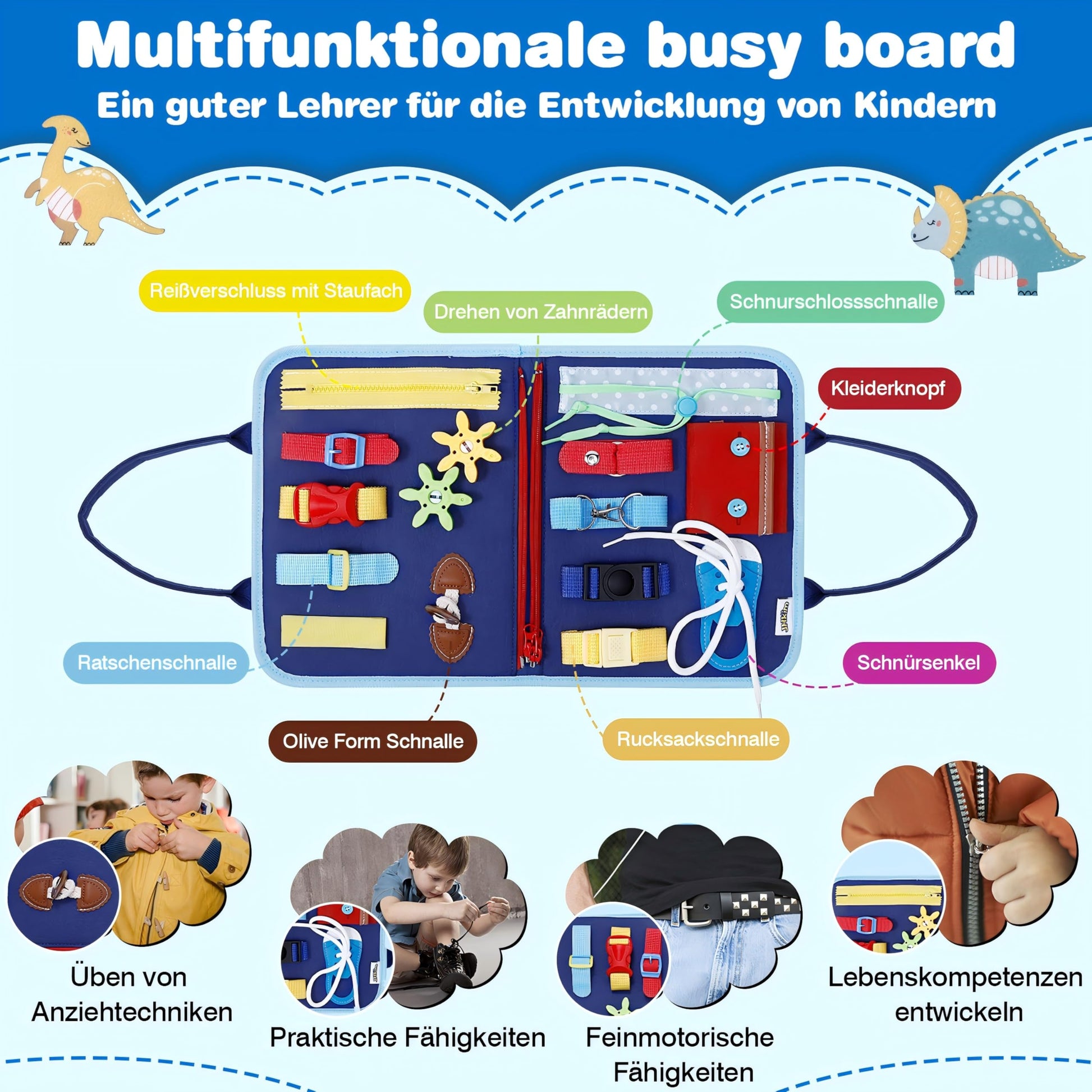 JHkim Busy Board German Montessori Toy for 1 2 3 4 year olds, Gift for Boys & Girls, Children's Learning Activity Board, Kids Motor Skills Toy, Motor Skills Board for Travel/Car/Plane