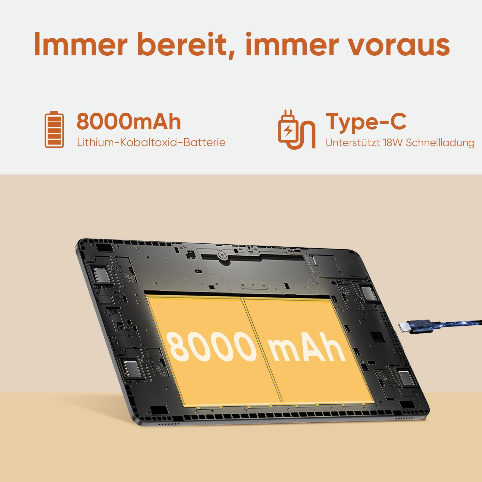 "Power for the Whole Day - The tablet is equipped with a huge 8000 mAh battery and 18 W fast charging support. Whether you're watching movies, listening to music, or surfing the internet, enjoy uninterrupted use. Dual-band Wi-Fi (2.4 GHz/5 GHz) and Bluetooth 5.0 ensure fast and reliable connections wherever you are.",