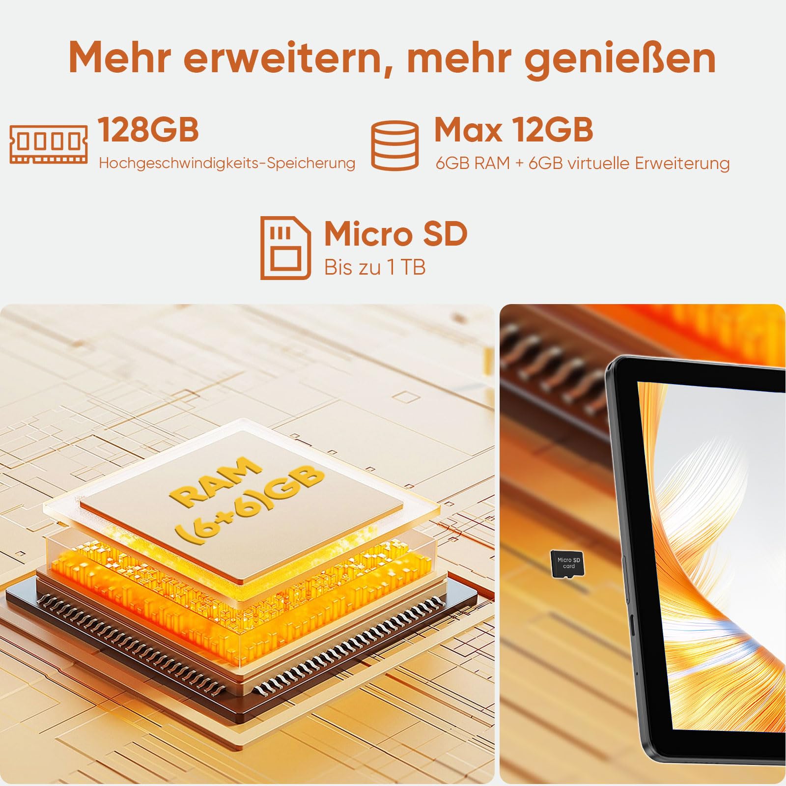 ["High Performance - The JIKOCXN Tablet is powered by the latest Android 14 with Unisoc T606 high-performance octa-core processor and 12 GB of RAM (6 GB RAM + 6 GB expandable). Whether it's video, music, work, eBooks, or multitasking, this tablet is ready for everything.",