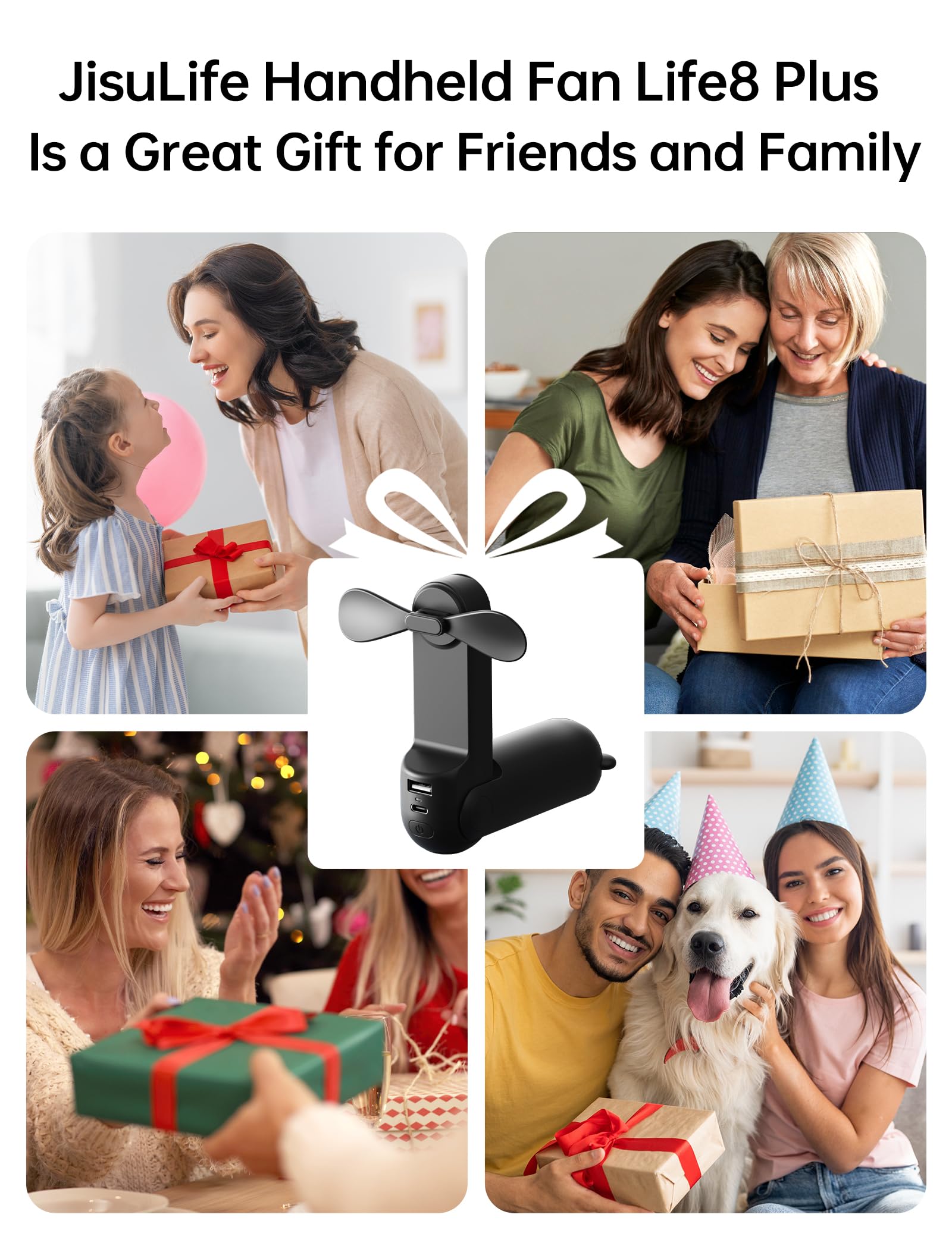 JISULIFE handheld fan Mini fan 3 in 1, with 4500 mAh power bank USB battery small, battery operated max 37 hrs runtime portable fan, flashlight function-black
