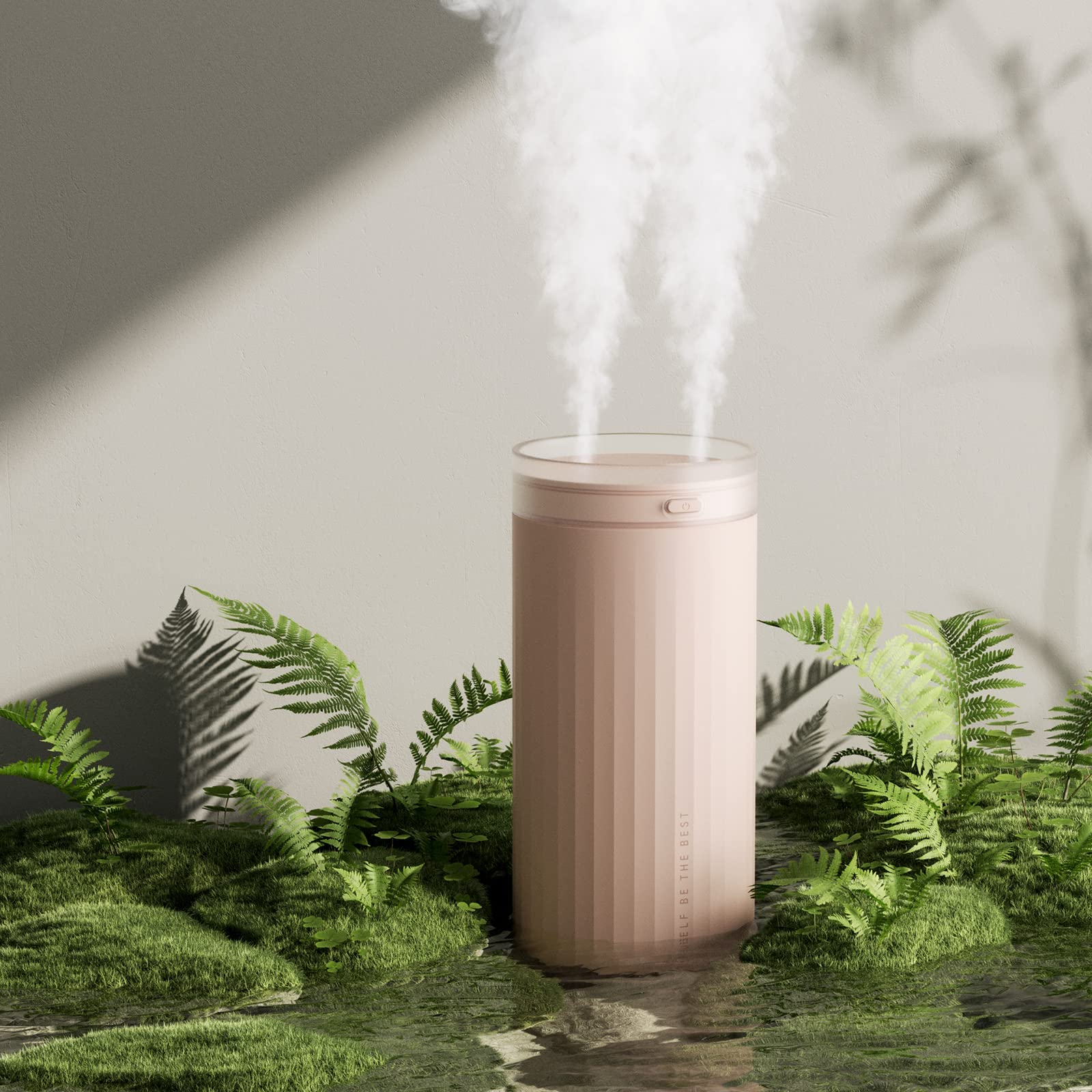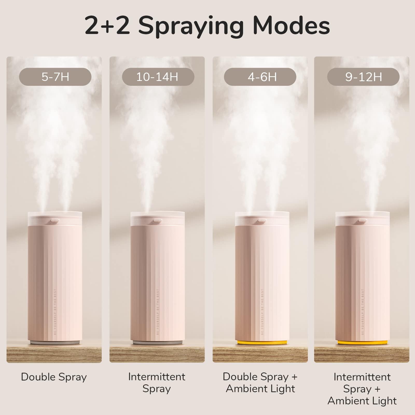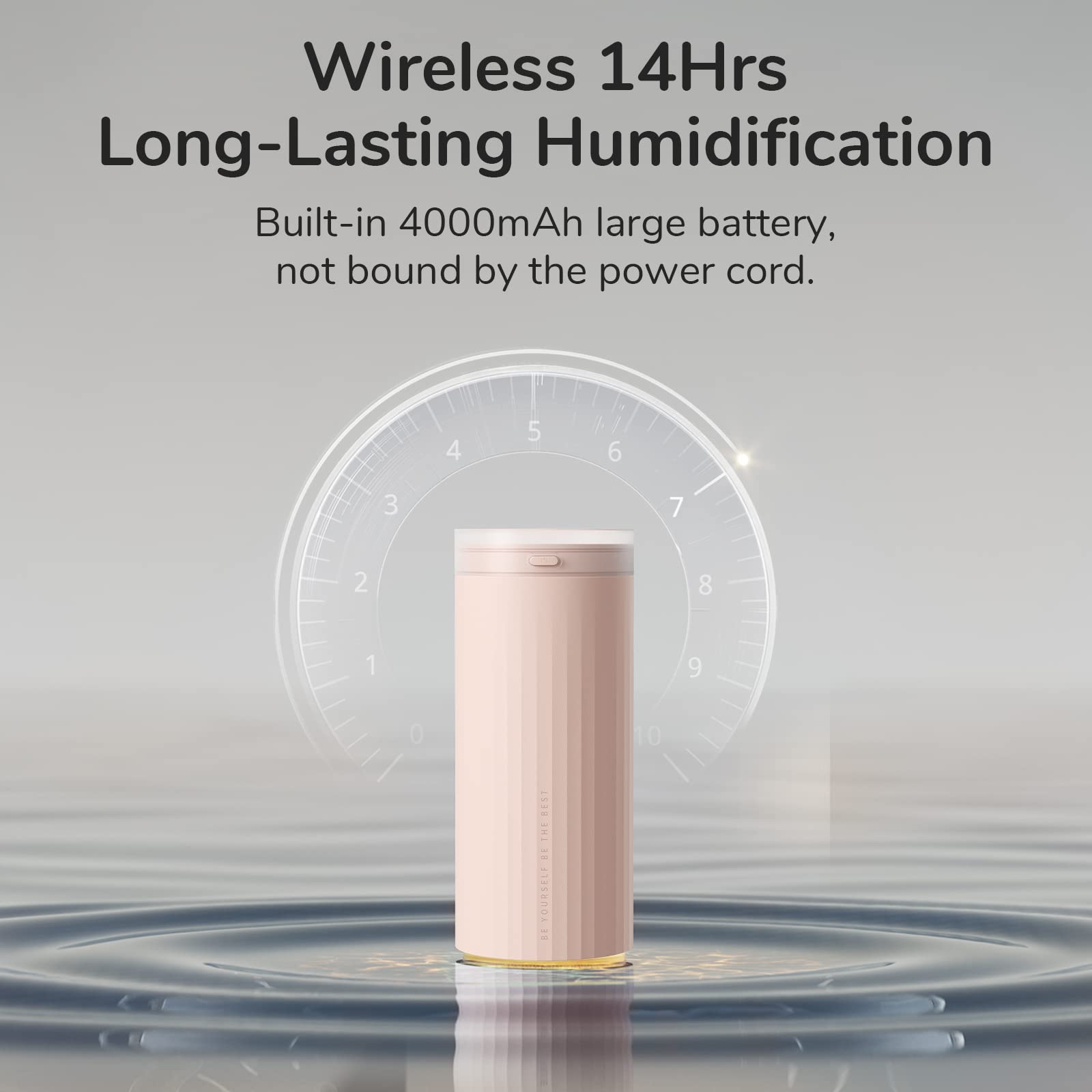 JISULIFE humidifier, 4000mAh Portable Mini Humidifier, Personal Desktop Humidifier for Bedroom Quiet, Automatic Shutdown, Dual Mist Ports for Baby Travel Car-Pink