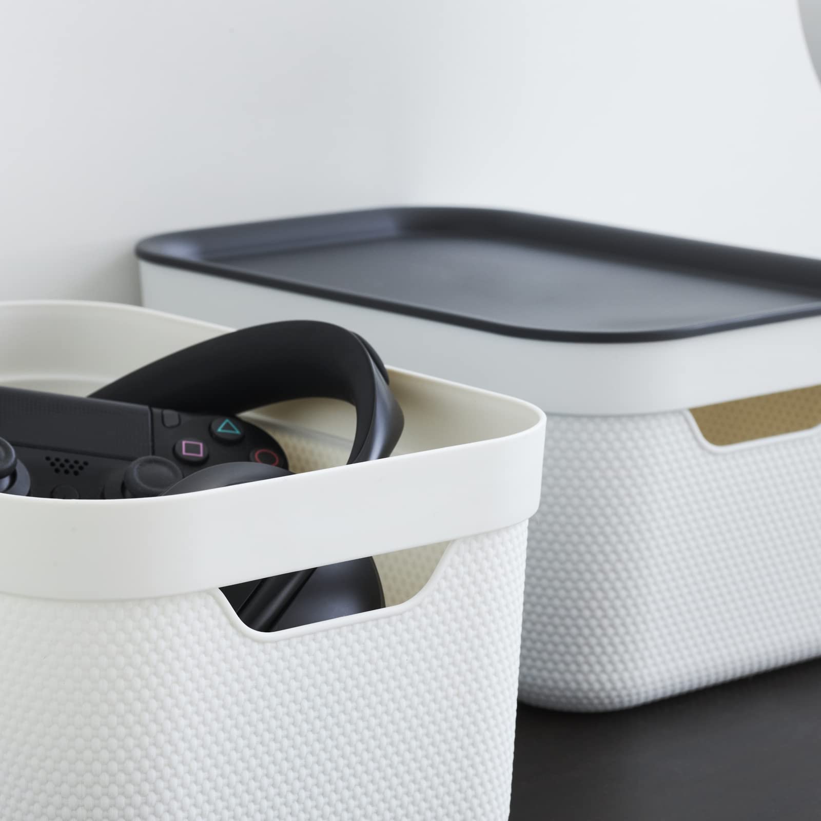 Jive storage box set of 3 with lid, made of recycled plastic (PP), white/anthracite, 3x5L (26.5 x 18.5 x 13.2 cm)