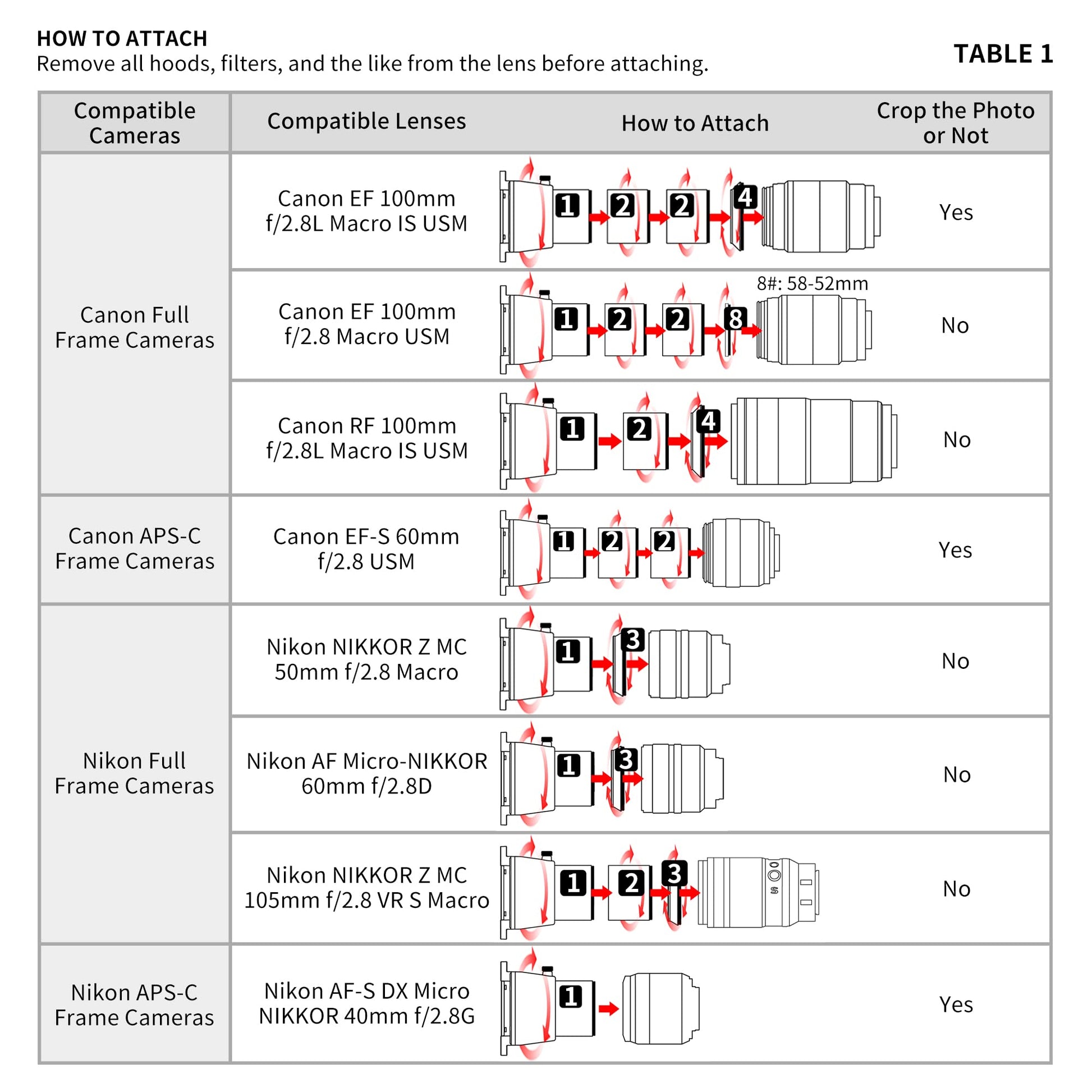 ["Film digitization adapter】 Specifically designed for copying negative films and converting movies into digital files. It is a clever accessory for re-photographing 35mm negatives and slides. Converting old film into a digital image is more conducive to color restoration and long-term preservation.","【USB LED light】The 1.5m long wired soft USB light features 42 integrated ultra-bright LED lamp beads, supports 10-level brightness adjustment, CRI of 95+, and a color temperature of 6500K, effectively reducing color distortion of the image, providing sufficient soft and even light.","【Flexible shooting angle】The viewing angle adjustment ring on the remake run can adjust the viewing angle and tilt angle during shooting. The back of the fill light has a bracket and the bottom has a 1/4" -20 tripod thread. You can use the device on a desk or tripod.","【COMPATIBILITY】Designed to be used with selected micro lenses, such as Nikon Micro NIKKOR 60mm 1:2.8G ED, 40mm 1:2.8G, 60mm 1:2.8D, etc. Ideal for Nikon D850 camera. The film strip holder holds a 35mm film strip with six images. Slide holder holds two framed 35mm slides.","【Package includes】1 x running adapter, 5 x lens adapter, 1 x 35mm negative film holder, 1 x 35mm slide holder, 1 x LED light"]