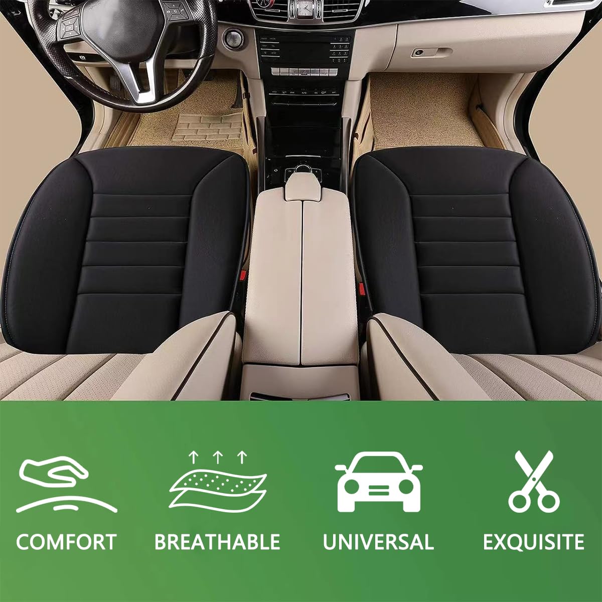 "【Universal Size】: The 2 front seat cushion covers measure 17.3 x 18.7 x 1.2 inches and are suitable for use in cars, homes, and offices. The portable car cushion can be taken and attached anywhere. Can be used for car seats, airplane seats, office chairs, wooden chairs, sofas, and other chairs.",