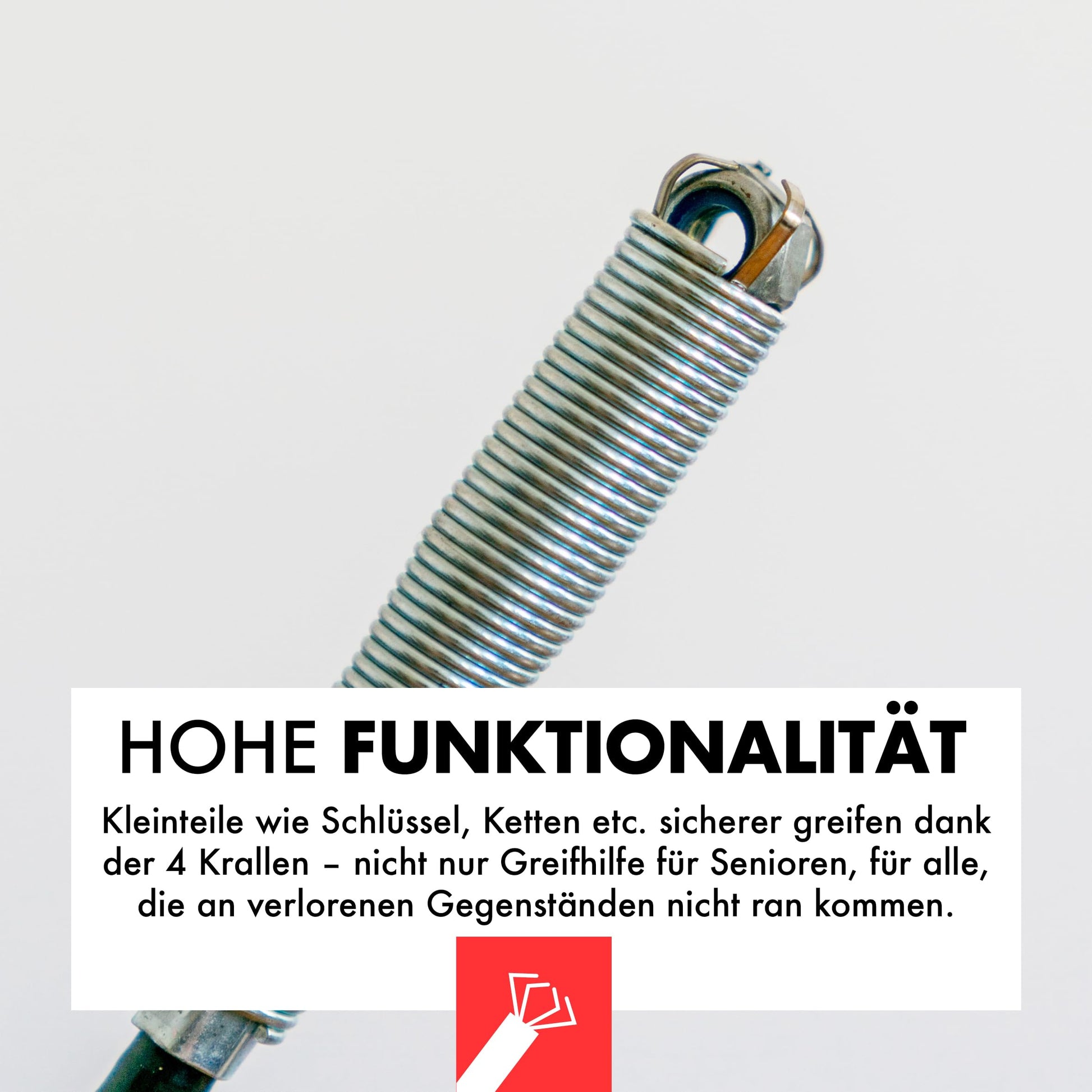 "HIGH FUNCTIONALITY - securely grab small parts like keys, chains, etc. with the 4 claws - not just a helpful tool for seniors, but for anyone struggling to reach lost items.",