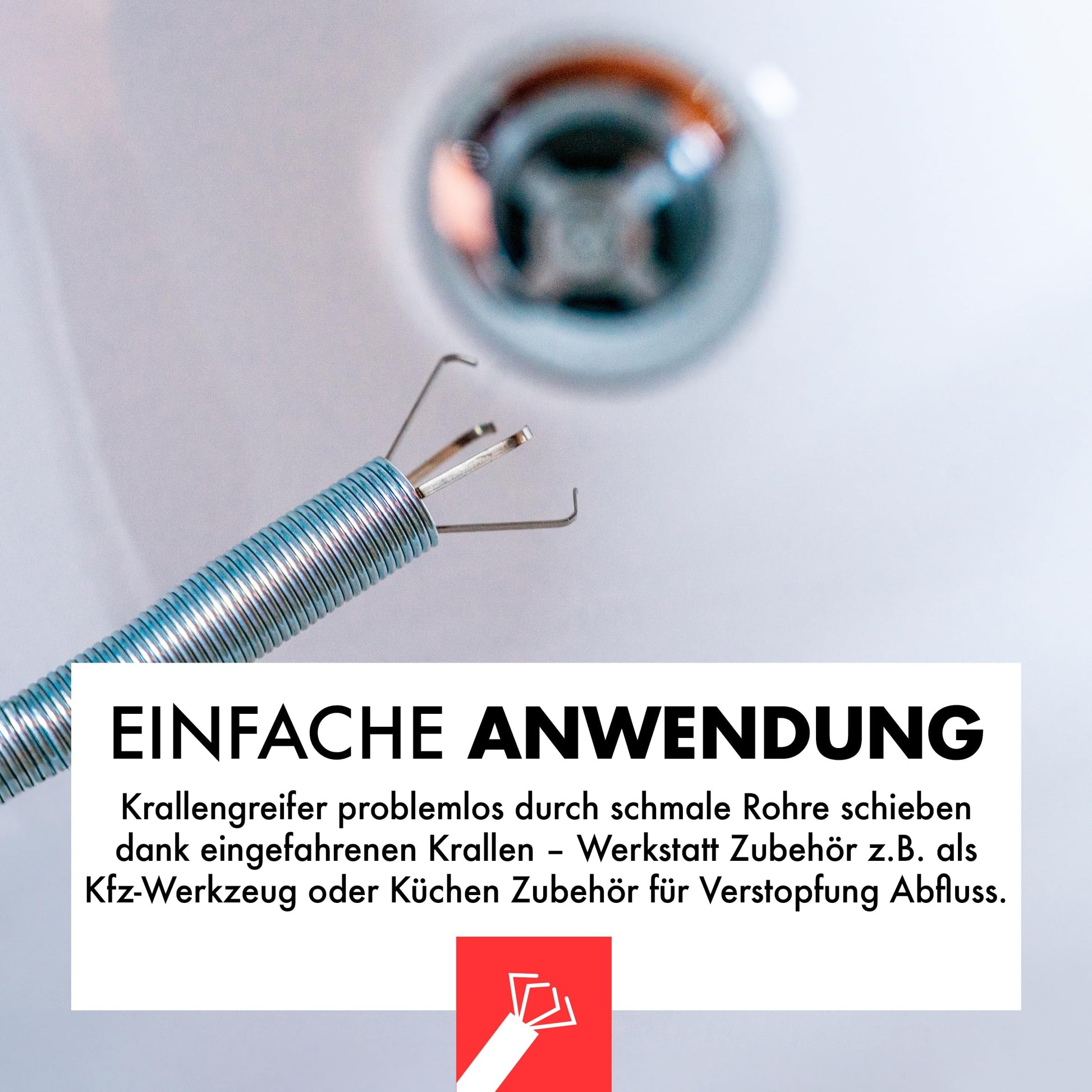 "EASY TO USE - slide claw grabber easily through narrow pipes with retracted claws - workshop accessory such as auto tool or kitchen accessory for clogged drains.",