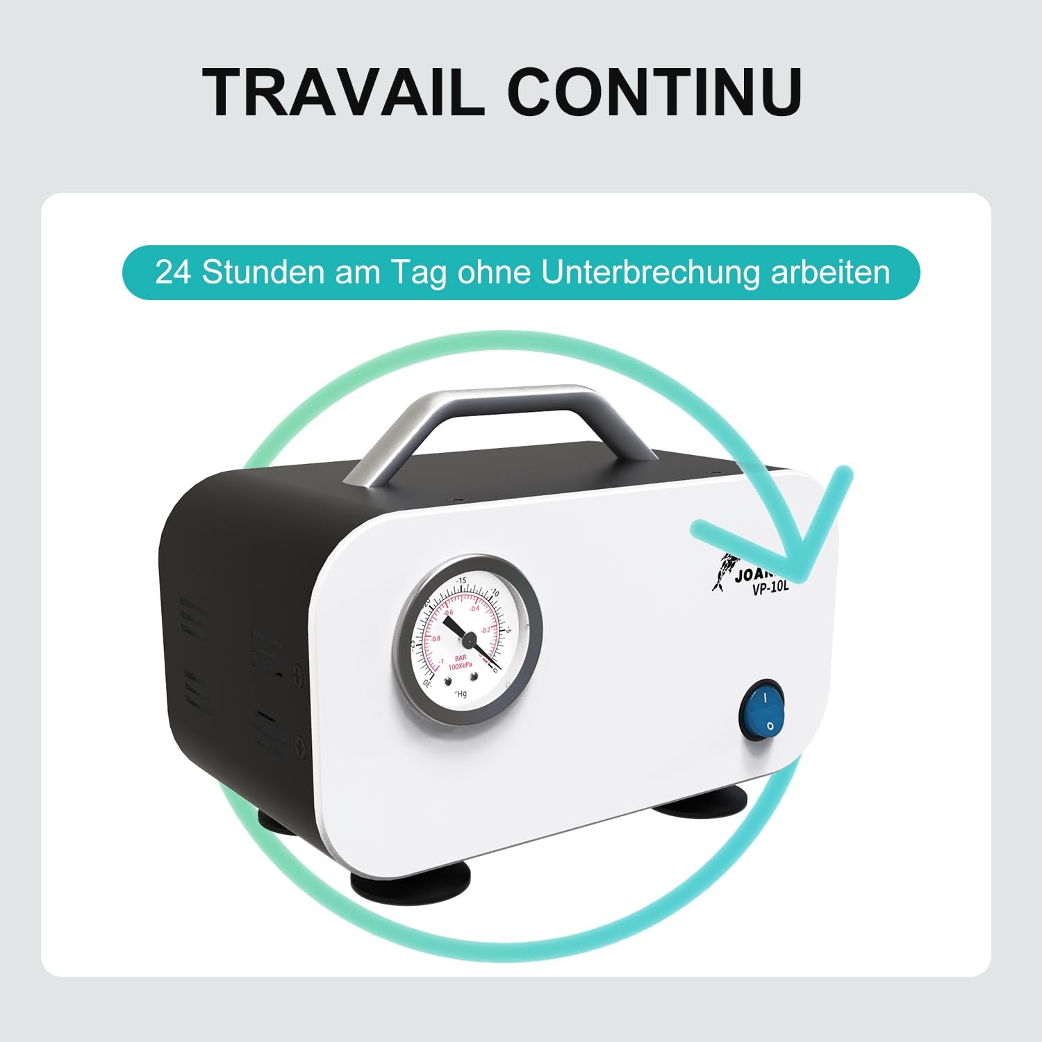 Easy to use: Simply plug in, connect the supplied rubber hose, and turn on. It's that easy! The display on the front panel clearly shows the vacuum in bar and Hg.