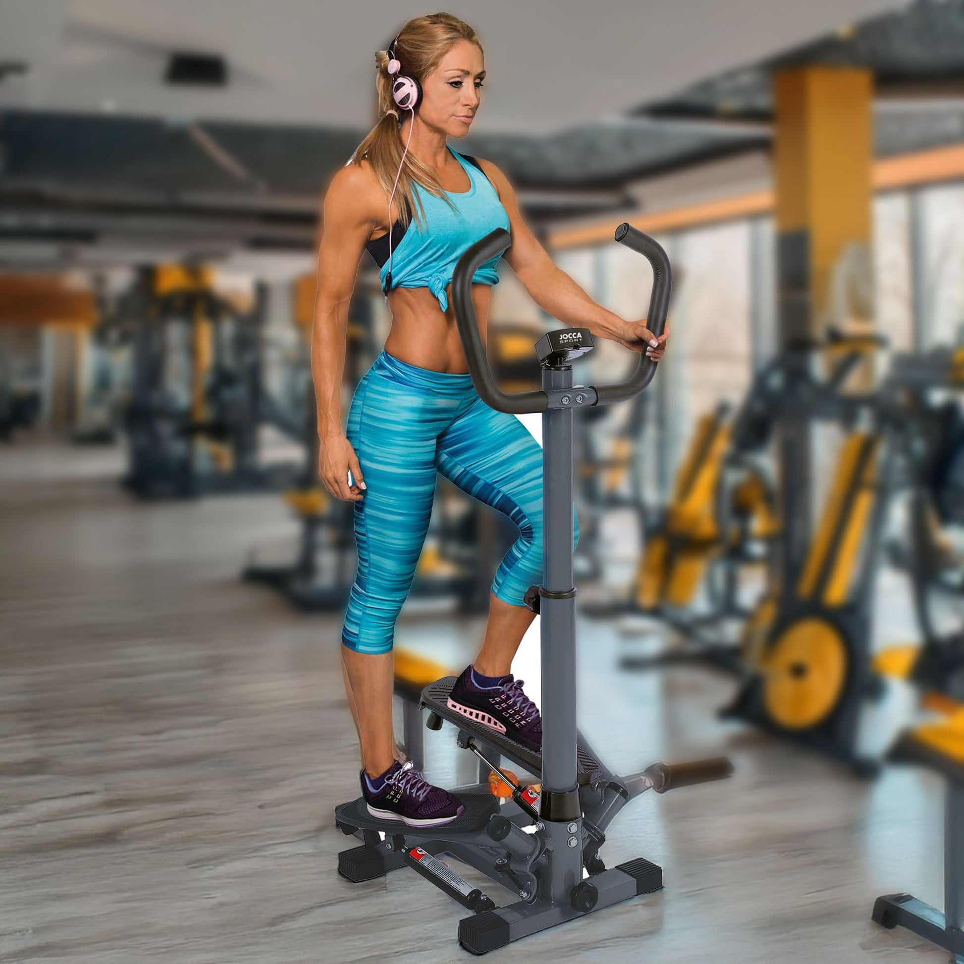 JOCCA Side Stepper with Support Bars, Home Trainer for Glutes Abdomen Legs, Digital Function Counter, Max Load 100 kg, Silver/Black