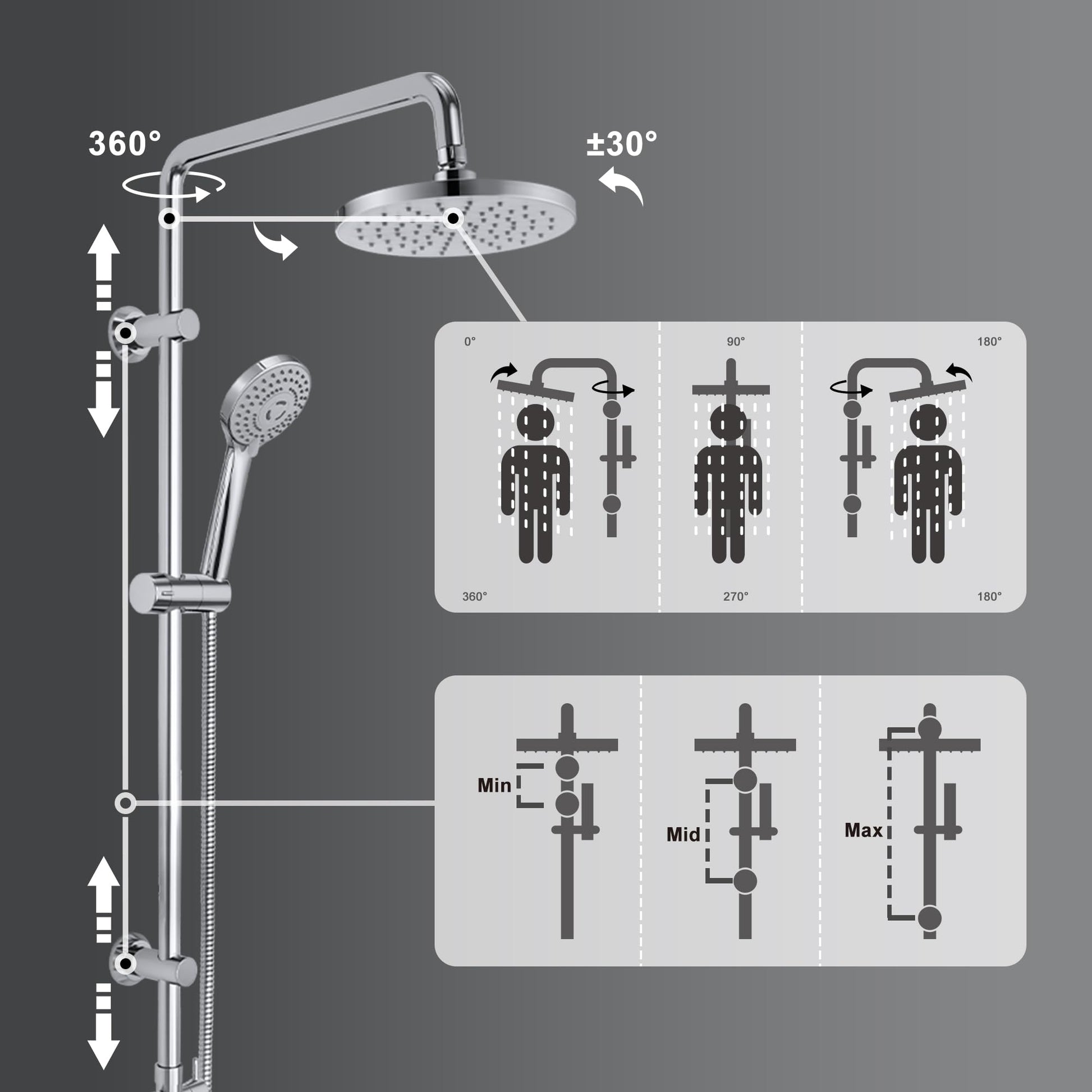 JOHO Stainless Steel Shower System Shower Set Shower Rod Rain Shower Set with ABS Shower Head D20cm
