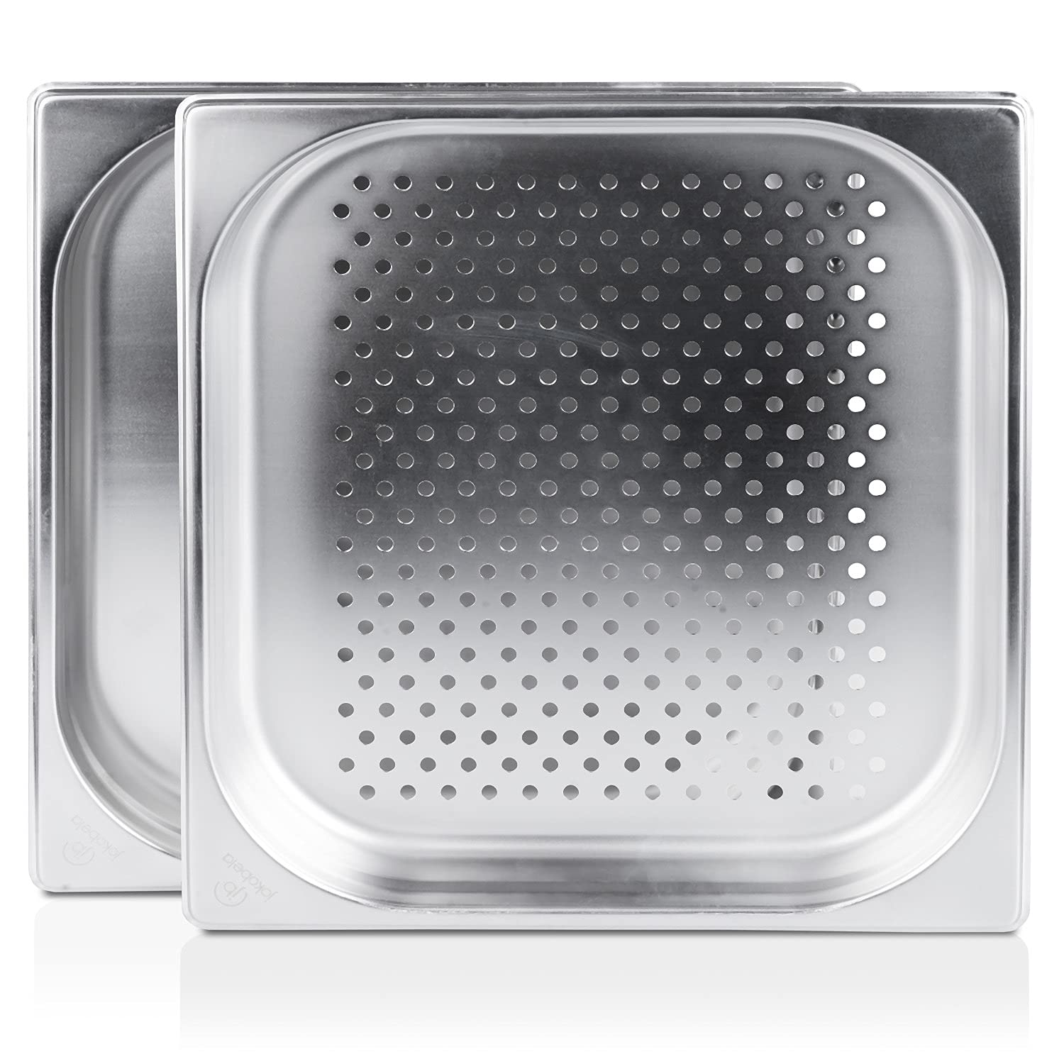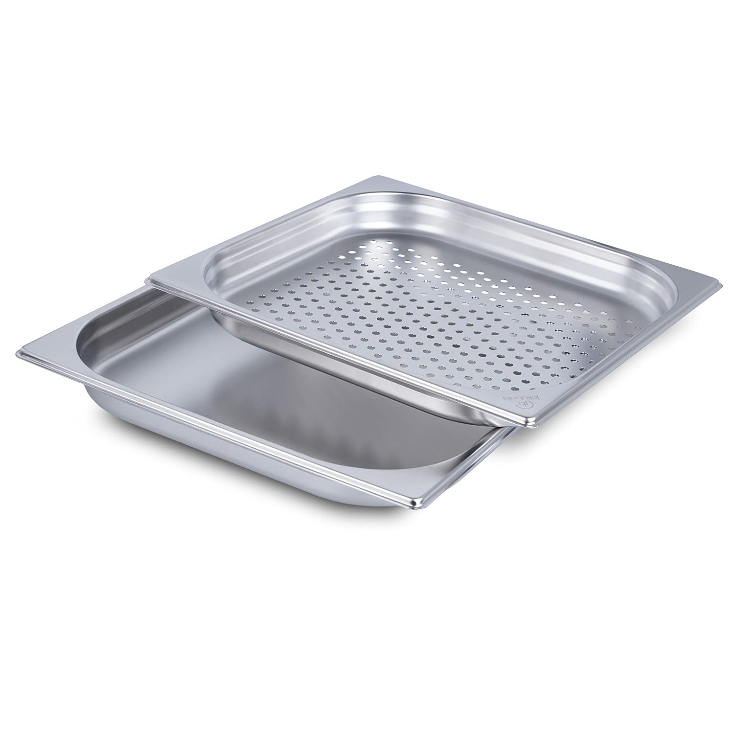 jokobela 2-piece GN container set :: 1x perforated / 1x non-perforated :: suitable for Gaggenau, Miele, and Siemens steam ovens (stainless steel, dishwasher safe, GN 2/3, W 32.5 x L 35.4 x 40mm deep)