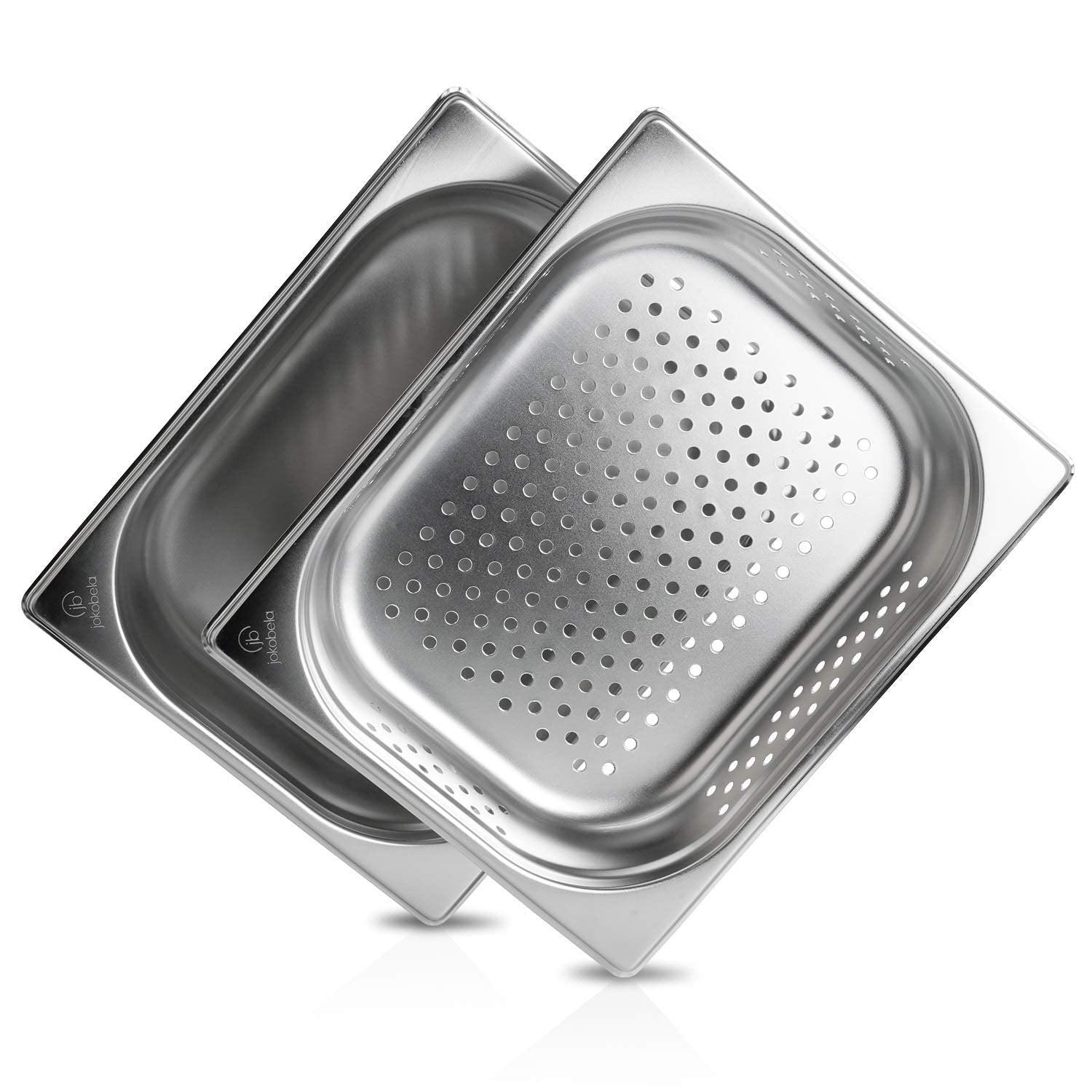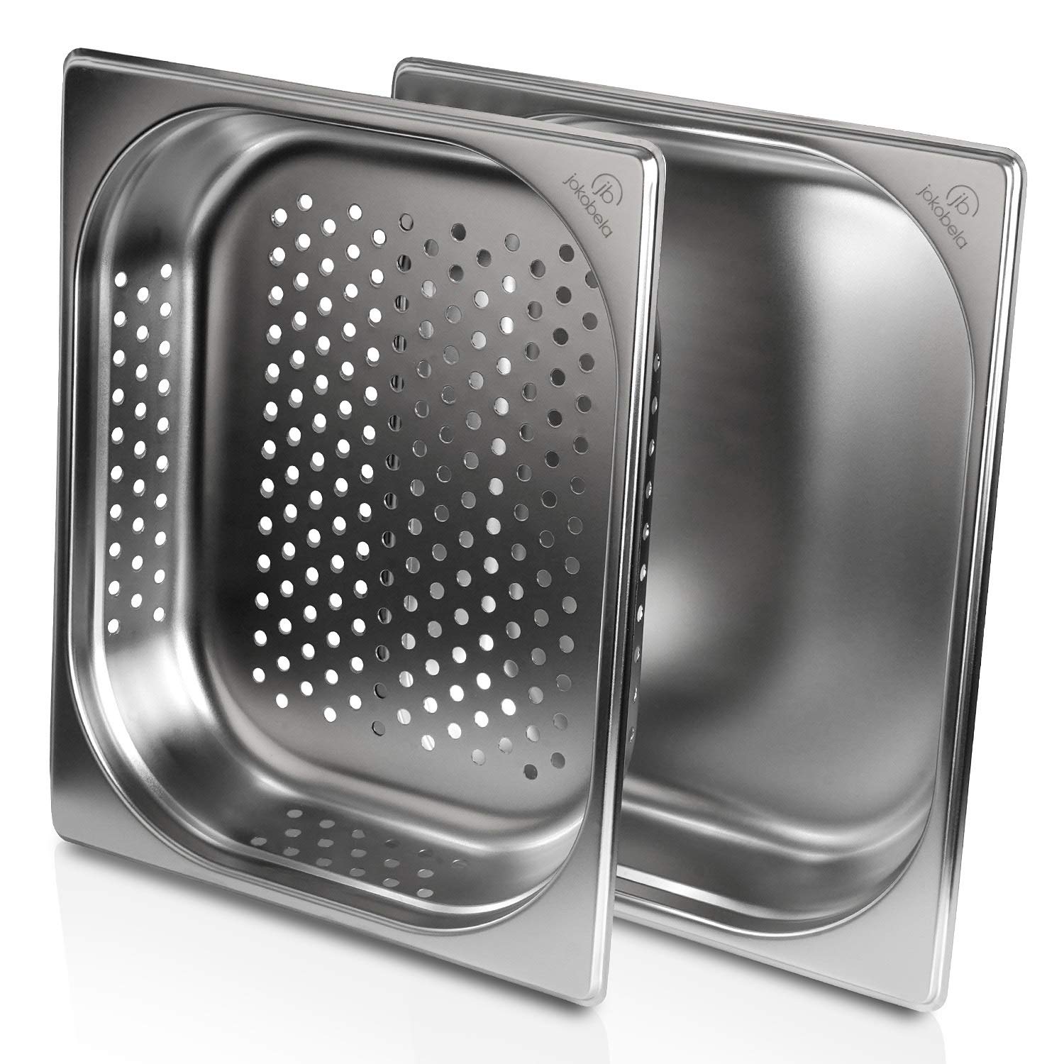 jokobela GN Container SET :: GN 1/2 65mm, 1x perforated, 1x non-perforated :: Compatible with Gaggenau/Miele/Siemens/AEG/Electrolux steam ovens (Heat-resistant, stainless steel, Dishwasher safe)