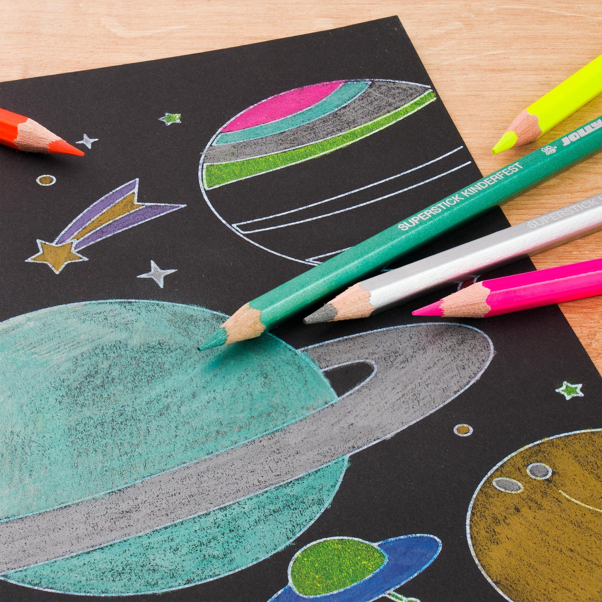 "Diverse color selection: The JOLLY Superstick METALLICMIX Set offers 24 high-quality colored pencils in metallic and neon colors, perfect for creative projects and artwork with vivid effects."