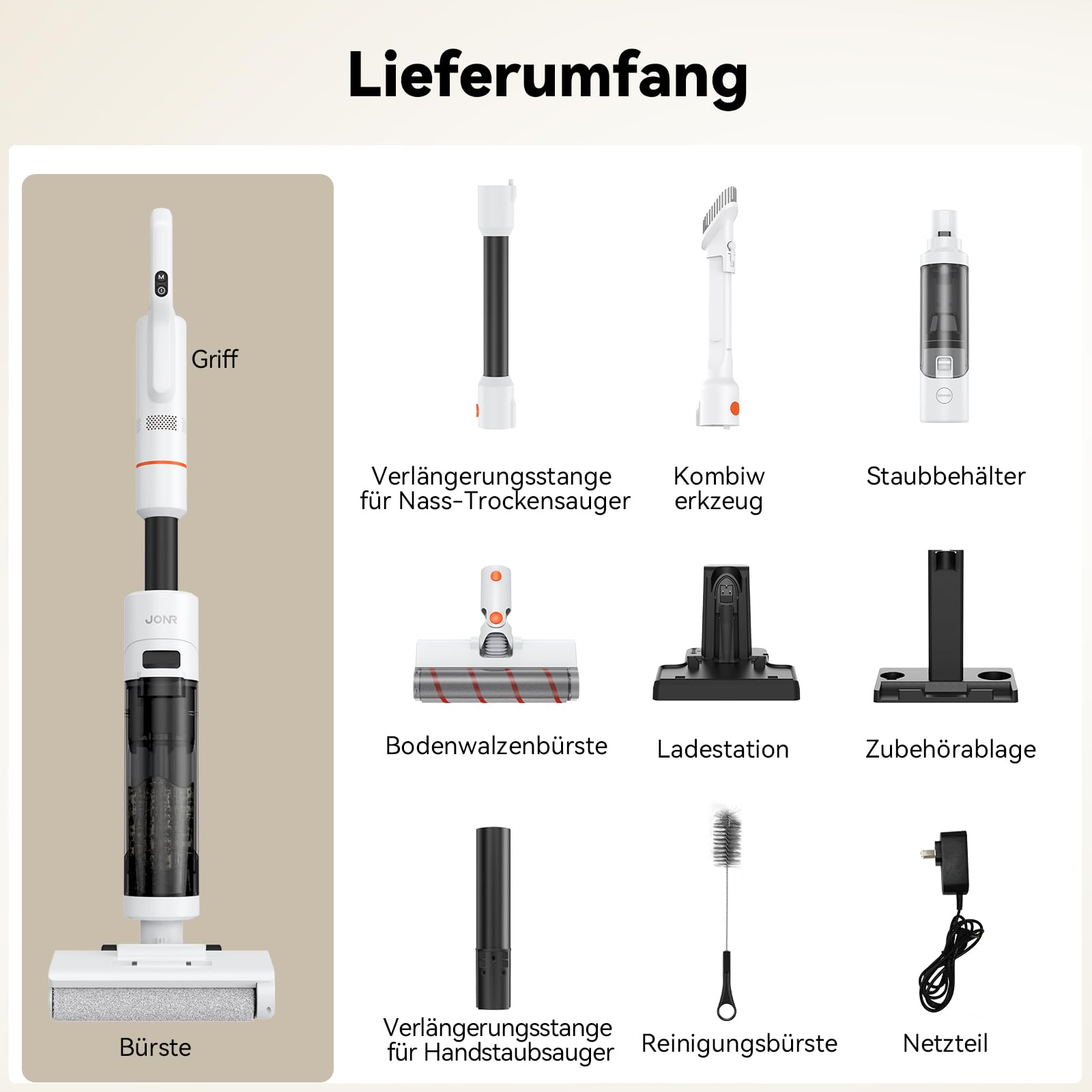 JONR ED20 Pro 4-in-1 Wet Dry Complete Vacuum, 17000 Pa suction power, self-cleaning and automatic drying with one click, Intelligent voice reminder