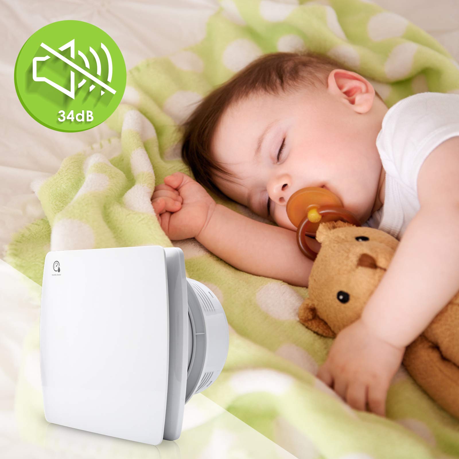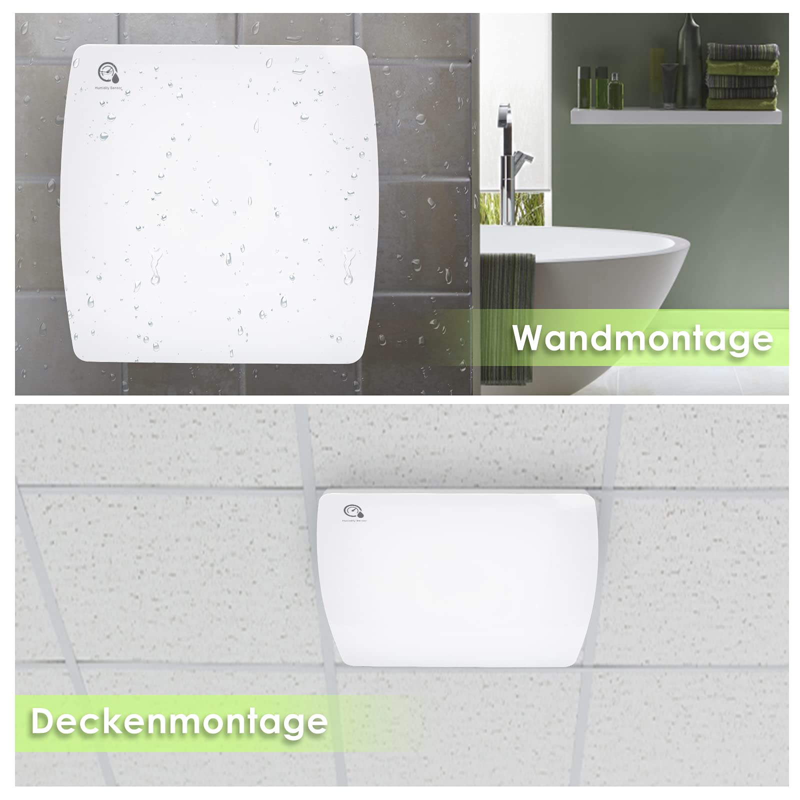 ["🌪️【Compact Size】: Our bathroom fan with a 100 mm diameter is equipped with a high-quality double ball bearing motor. With an impressive speed of 2200 RPM and an air volume of 95 m³/h, it effectively ensures quick ventilation. The integrated humidity sensor allows for automatic control based on an adjustable range of 60% to 90%. Operating at 220V-240V/50Hz and 12W power consumption.","🌪️【High Quality and Waterproof Design】: The main body of the bathroom fan is made of sturdy ABS material, providing reliable protection with an IPX4 protection class. It is corrosion-resistant, durable, and stable. The attractive design of the front panel made of high-quality plastic harmoniously fits into any bathroom decor.","🌪️【Quiet Operation for Pleasant Ventilation】: Our bathroom fan ensures fast and quiet ventilation. With a low noise operation at only 34 decibels, it effectively removes moisture and unpleasant odors. Ideal for use in bathrooms, living rooms, bedrooms, kitchens, and offices. Easy installation allows for effortless mounting.","🌪️【Integrated Timer and Backdraft Damper】: The bathroom fan with humidity sensor adjusts to room humidity conditions and has four adjustable humidity levels. Additionally, a timer with an adjustable time range of 5 to 30 minutes is integrated. The fan blades ensure optimal air exchange, while a backdraft damper prevents the entry of dust, insects, and rainwater, effectively blocking the backflow of outside air.","🌪️【Easy Installation】: Our bathroom fan is easy to install and can be mounted by one person without any issues. It can be installed on both the wall and ceiling. The package includes the bathroom fan with backdraft damper, screws, a crosshead screwdriver, and detailed instructions."]