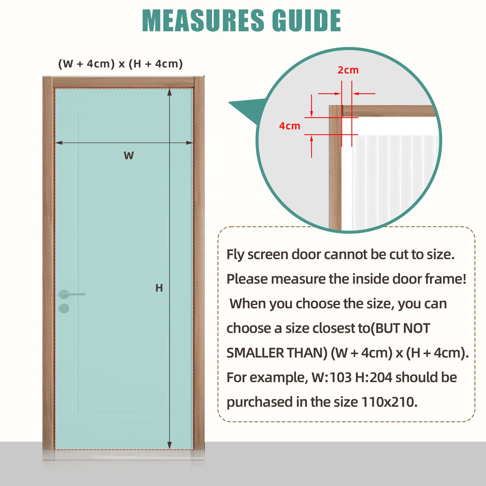 ["Fly screen for balcony door 180x220cm (width x height): For fly screens with fixed, sliding, metal, or wooden doors. for doors with an inner frame of up to 176x216cm. Please note that the frame cannot be cut to size. Please do not choose a size that is too small.","A must-have for summer: Our fly screens open and close very reliably and keep annoying mosquitoes, flies, and insects out. Except for the magnetic closure in the middle, visibility is not compromised. So you can breathe freely every day in the summer!","Ideal for your home: Everyone can easily pass through and the fly screen closes automatically and quickly. Perfect for families with children and pets. Our fly-tight fly screens are perfect for balcony doors, courtyard doors, patio doors, and indoor courtyard doors.","Easy and light installation: You do not need any tools and with the help of the supplied adhesive tape, the fly screen can be easily and quickly attached to the door frame. For wooden door frames, additional pins are provided for installation.","High-quality upgrade: The fly screen is made of durable nylon yarn. It is tear-resistant and strong enough to last for years. Made with large magnets with excellent magnetic force, it closes automatically tightly and quietly within a second, without disturbing your family.","Perfect service: Since the product size is measured by hand, the measuring method and tools of each person are different, there is a slight measurement error of 1-3 cm. If you want to exchange the goods for a different size or have any problems after purchase, you can contact us through the order form. You will receive a satisfactory response within 24 hours!"]