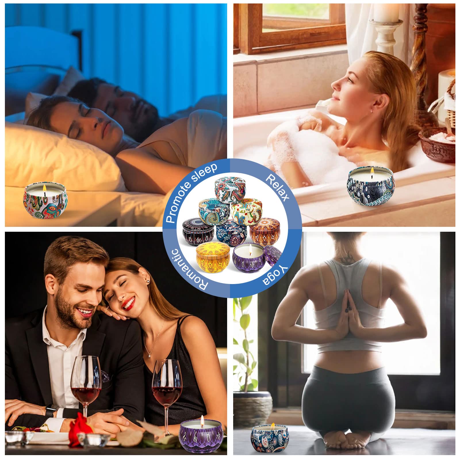 "🌈 【Multiple Scents and Color Blocks】 Scented candle gift set with 4 wonderful scents: Rose, Lemon, Lavender, and Vanilla. There are 8 color blocks: 2 Purple, 2 Yellow, 2 Red, and 2 Blue. Using natural ingredients, not sharp. You can add different color blocks to create colorful scented candles, customize your own unique candles according to your preferences.