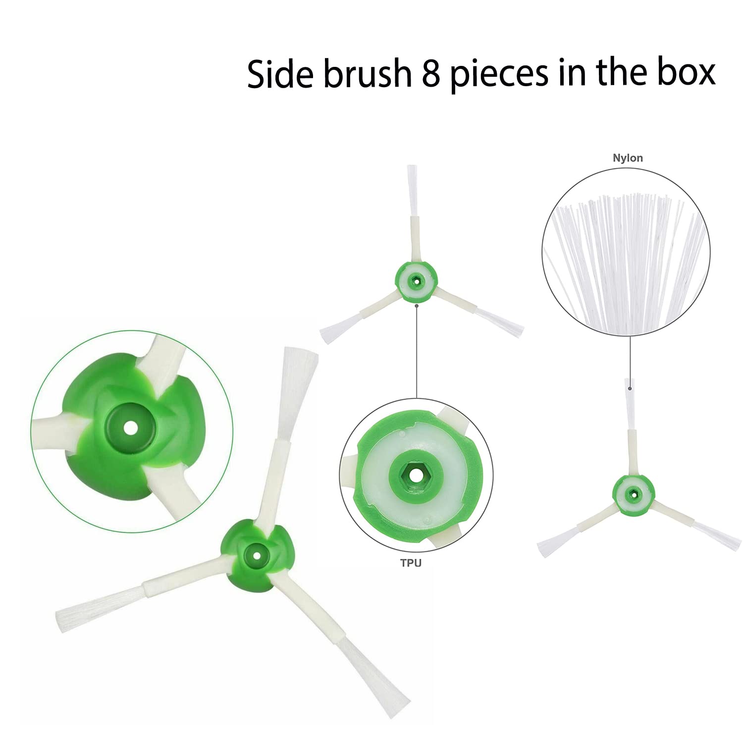 ["What's Included in the Box: Rubber brush rolls/main brushes x2 sets; side brushes x8 pieces; air filters/HEPA x8 pieces; screwdriver x1 piece; front wheel x1", "Perfect Fit - This replacement part set is fully compatible with the iRobot Roomba E-Series E5 (E5134) E6 (E6198) E7 I-Series i7 (7150) i7+ i7 plus (7550) i1+ (1152) (11540) (1156) (1158) i4+ (4550 4552) i3+ EVO (3550) i6+ (6550) i8+ (8550) Combo i5 + Combo J5+. This set works just as well as the original parts, is precise and easy to install. Please note that this accessory set is not compatible with the Combo J7+. Please ignore if your robot model is Combo J7+", "High-Quality Replacement Parts - Dual multi-surface rubber brush extractors feature a durable rubber profile design, one for pulling dirt and the other for sweeping dirt. The side brush reaches deep into corners and edges to remove more dirt, dust, and debris. Same quality and performance as original filters for iRobot Roomba e/i/j Series, can filter 99.97% of dust and dirt. Roomba i7 replacement parts replace in time and extend the life of your devices.", "Easy to Replace - Replacement accessories for iRobot Roomba e/i/j Series are easy to install, simply wash them by hand in clean water and let them air dry completely. If the brushes are bent due to shipping, heal them by simply soaking them in hot water for a while. Edge sweep brushes and filters should be replaced every 2-3 months. Multi-surface rubber brushes should be replaced every 6 months.", "Our Promise: If you are not satisfied with the product for any reason, you can request a replacement or full refund. If you are unsure if this replacement part is suitable for your device, please contact us or ask your question through Amazon, it would be our pleasure to assist you!"]