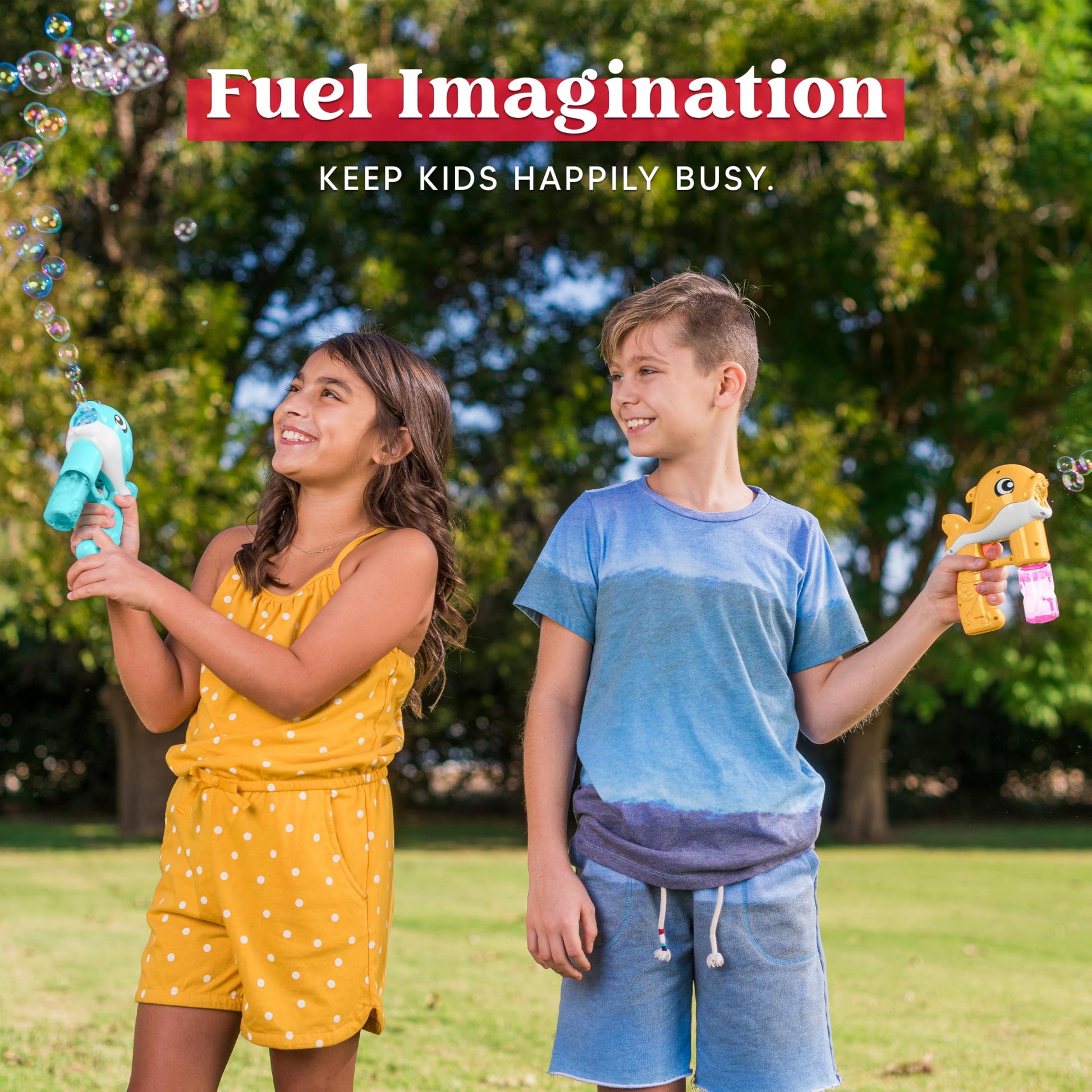 ["SUPER AFFORDABLE PACKAGE. Our Bubble Blower includes 2 Pack LED Automatic Whale Bubble Maker Guns for kids. Comes with 4 bottles of bubble solution (1 Orange + 1 Purple).","REAL FUNCTION. Bubble Blaster Gun toy has batteries: including power, spacer with light without music. Ready, aim, and fire a barrage of bubbles! Educational toy serves a dual purpose - it's fun for kids and helps them learn something new at the same time!","ENDLESS FUN. The Bubble Shooter is a smart and practical purchase for kids. Head outdoors, grab your bubble gun, and get ready to indulge in total playtime fun! A perfect gift for outdoor summer fun, pretend play, as a learning toy, and for classroom use.","CHILD SAFE: Non-toxic. Solution passes all safety tests (TRA, USP51, USP61, etc.). Very safe for children's skin and face. Not meant for ingestion.","CUSTOMER SATISFACTION. 100% customer satisfaction is our top priority. Feel free to contact us through "Contact Seller" message if products don't meet your expectations. The celebrations start at JOYIN!"]
