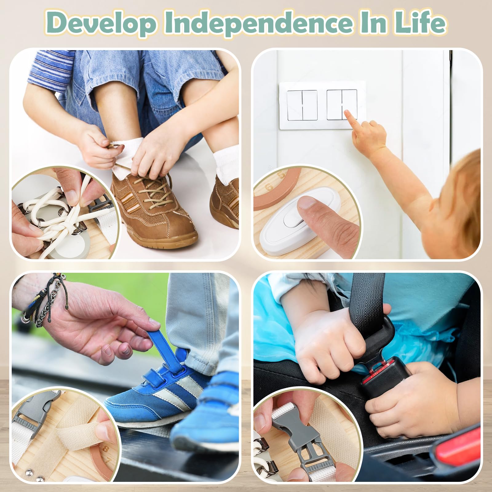 đ¶ăLearn Basic Life Skillsă- This wooden toy recreates life scenes and is equipped with switches, a clock, buckles, shoelaces, Velcro, and other activities to learn basic life skills that can be used every day.