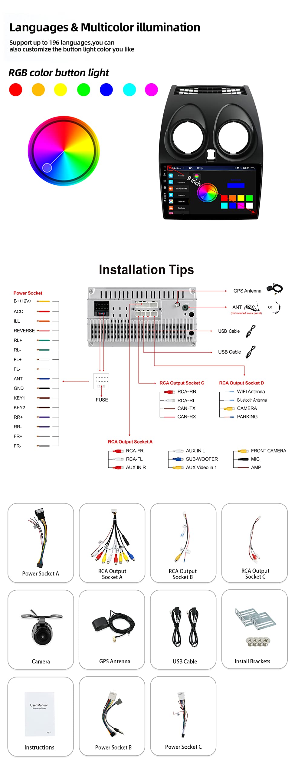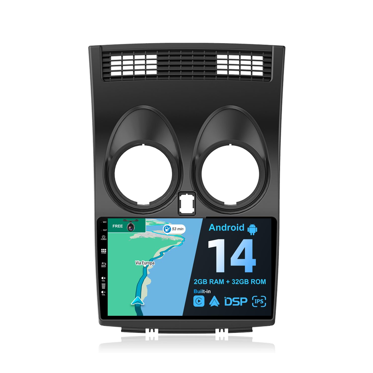 ["【ANDROID 14-SYSTEM】 Android 14 operating system with (2 GB RAM / 32 GB Rom) | With the powerful Quad-Core Cortex A7 x 1.8 GHz processor, you can work faster and more stable, install more APPs and save files than with other standard car radios on the market. ▲ GIFT: Reverse camera","【 CAR MODELS 】 Perfect fit for Nissan Qashqai J10 (2006-2015). If you are not sure if your car is suitable for this device or not, please contact us for help with pictures of the dashboard. Contact:joyx_techsupport@163.com","【WIRELESS CARPLAY - ANDROID AUTO】 Built-in Carplay and Android Auto, it is wireless Carplay and Android Auto (via Bluetooth or USB cable), the operation has become much easier, allowing you to access map navigation, phone contacts, notifications. Music and more, while focusing on the road. And much more fun.","【FAST-BOOT & SPLIT SCREEN】 Access the system in less than 2 seconds to speed up the Android system boot time from 25 to just 2 seconds is never easy. ▲ Allows running two apps side by side. You can use Spotify or another app while navigating.","【MULTIFUCTION】 Bluetooth hands-free call / multimedia streaming music | Split screen | Better WiFi | AM FM radio reception RDS | DAB + radio (ASIN: B083Q7YG4F) | USB storage and MicroSD memory card (up to 500 GB) | Steering wheel control | Full HD 1080P video playback | AV output function | Carplay and Android Auto Supported (ASIN: B086W6ZD74) | Mirror Link (smartphone screen mirroring) with iOS or Android."]