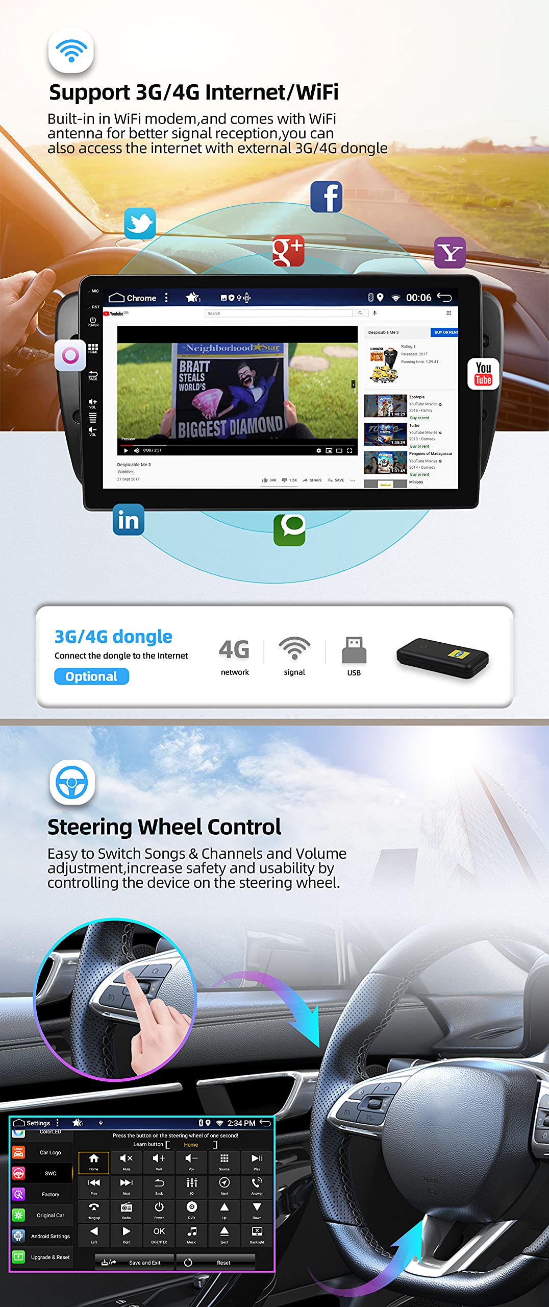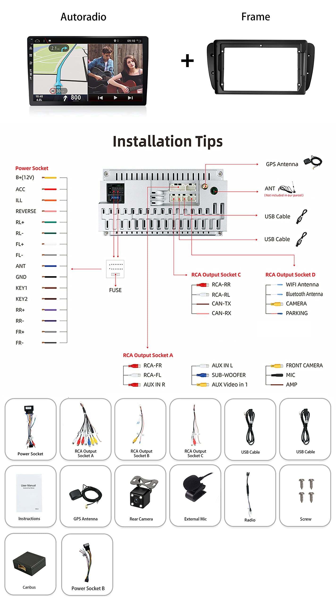 ["【AC8257 - 8 Core, 4G + 64G 】Android 14 system, TOP CPU: Rockchip AC8257 - Octa Core - 64-bit processor - 2.0GHz - Radio IC: TDA7786 - Amplifier IC: TDA7851 - (4GB RAM & 64GB ROM) allow you to enjoy faster and more stable operation Deeply optimized, maximum capacity, no more "deficit" in memory, making data processing more efficient. ▲ GIFT: LED backup camera | External microphone | Canbus","【CAR MODELS】 Perfectly compatible with Seat Ibiza 6J (2009-2014). Please contact us for assistance with pictures of the dashboard at Contact: joyx_techsupport@163.com","【DSP - CARPLAY - ANDROID AUTO】 DSP features a fully digital processor chip and 64-bit mode with double precision. Enjoy VIP sound effects in various locations, according to your needs. Built-in Carplay and Android Auto, operation has become much easier. And much more fun.","【FAST BOOT - 360° CAMERA】 Access the system in less than 2 seconds to speed up the Android system boot time from 25 to just 2 seconds, it's never easy. ② The 360-degree panoramic park function allows you to clearly see the area around the car. (optional, 4-piece AHD cameras must be purchased separately)","【BLUETOOTH 5.0 & SPLIT SCREEN】 Access the internet, ability to stream millions of songs, hands-free calling, phonebook, audio streaming. In split screen mode, you can run two apps side by side. You can use Spotify / other apps while navigating.","【SPECIALTY】 Supports DAB + (DAB adapter: B083Q7YG4F) / 4K video (3840 × 2160 pixels) / 1080P HD video / MirrorLink with iOS or Android phone / Built-in WiFi modem / Online and offline GPS navigation apps, support for 3D maps and voice guidance / AM FM radio reception RDS / USB and MicroSD memory card (up to 500GB) / Steering wheel control."]