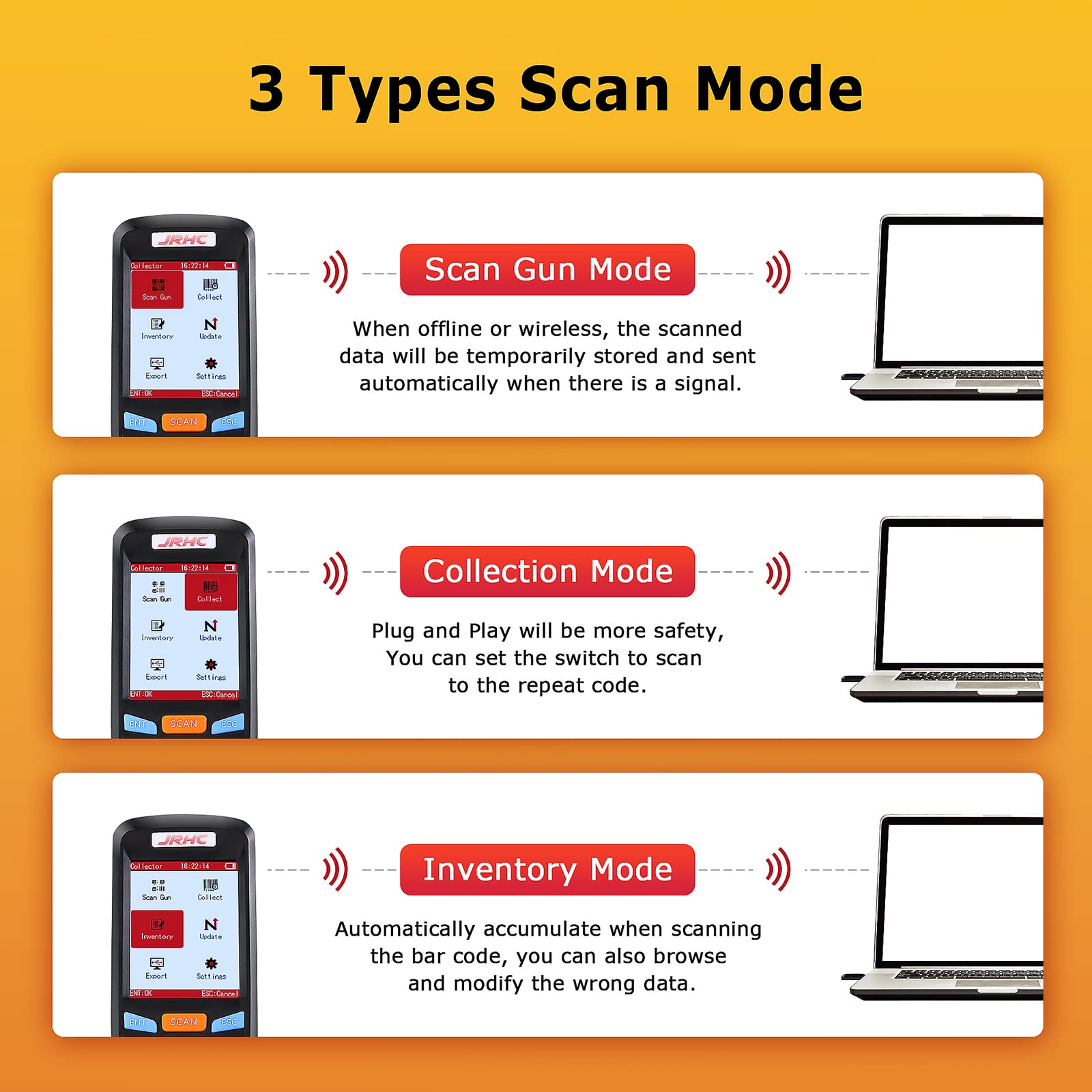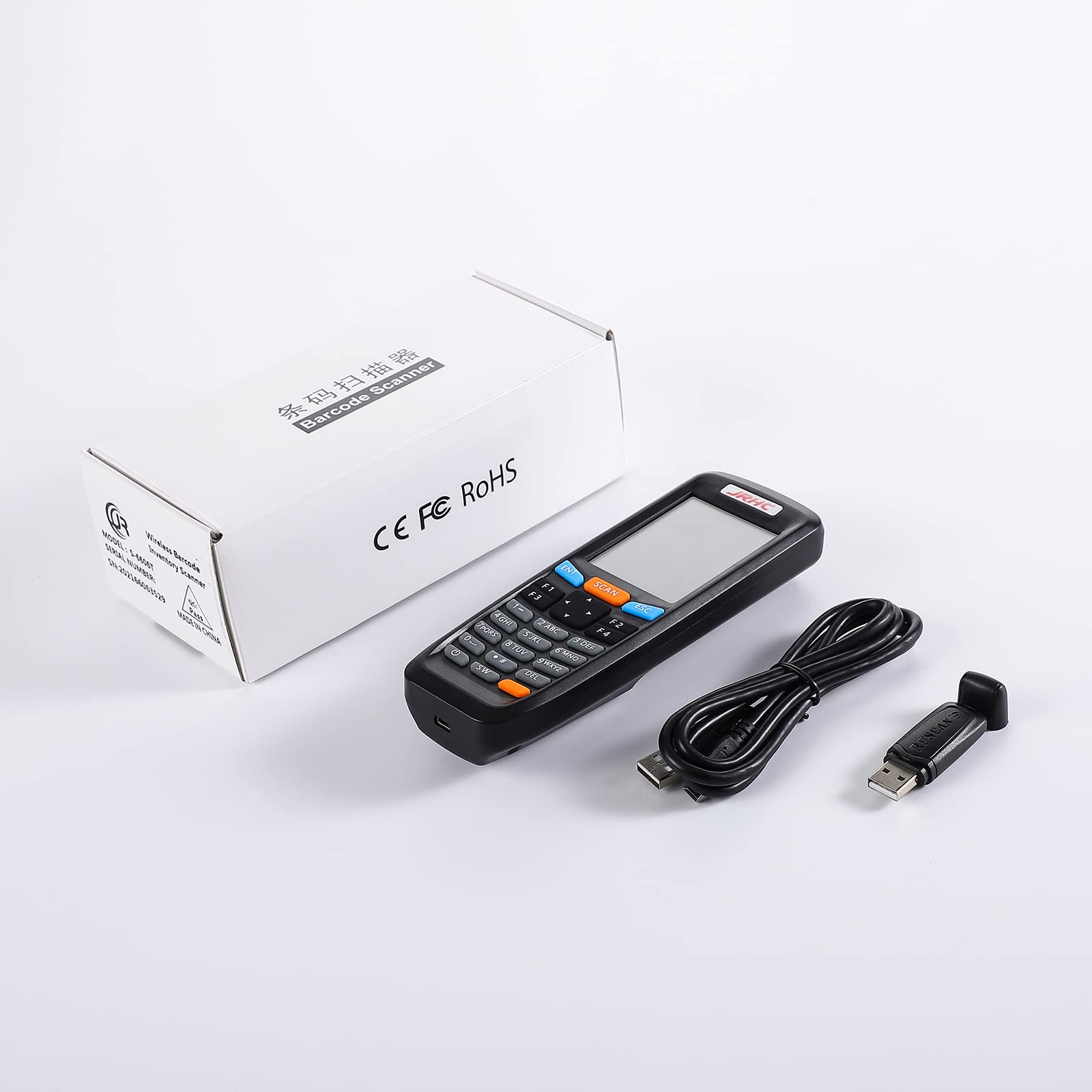 JRHC 2D Inventory Barcode Scanner and Collector with 2.4GHz Wireless USB Receiver. Multifunctional 2.8 Inch LCD Screen Barcode Reader with Long Transmission Range.