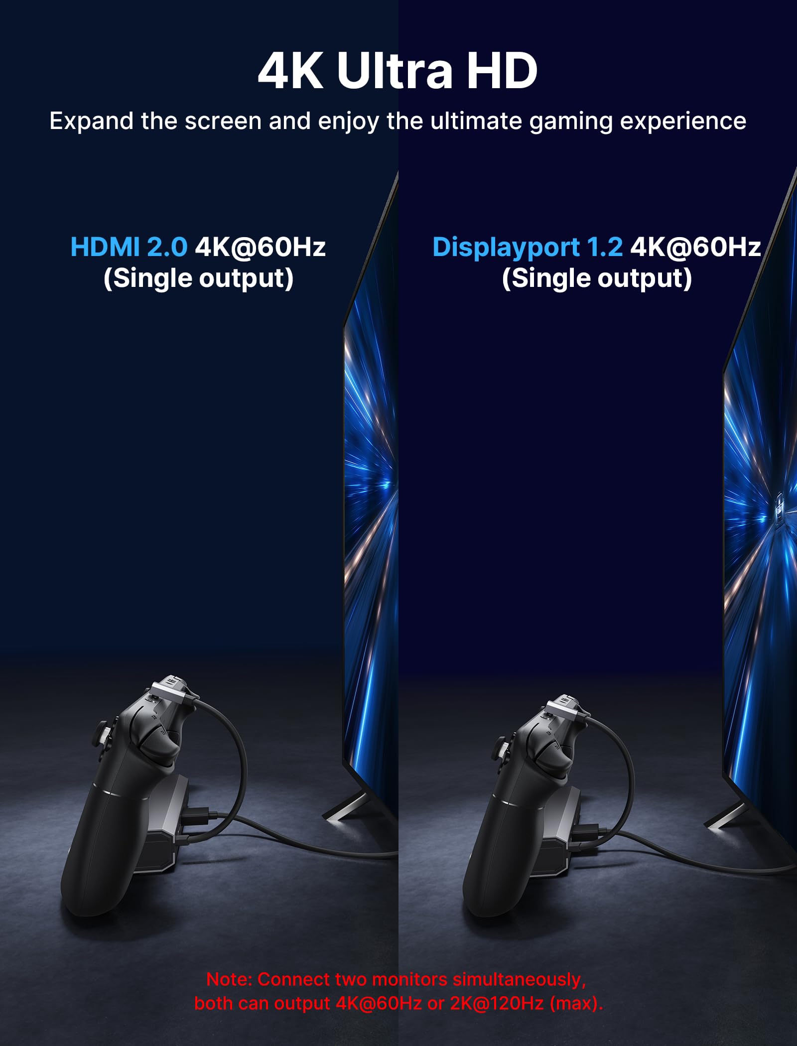 "Extra DisplayPort Output: With the third upgrade, the JSAUX HB0702 Steam Deck Dock provides a 4K@60Hz DisplayPort output, allowing you to complete your video output in a new way.",
