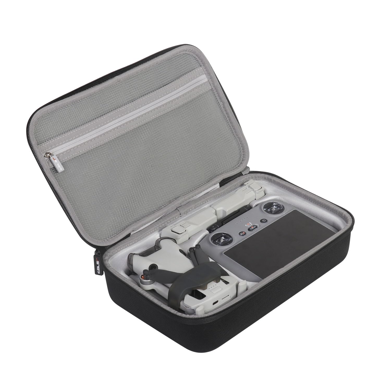 The specially cut EVA foam inside holds your DJI Mini 4 Pro and professional accessories, including 2 smart flight batteries and remote control (DJI RC-N2 remote control or DJI RC-2), securely in place.