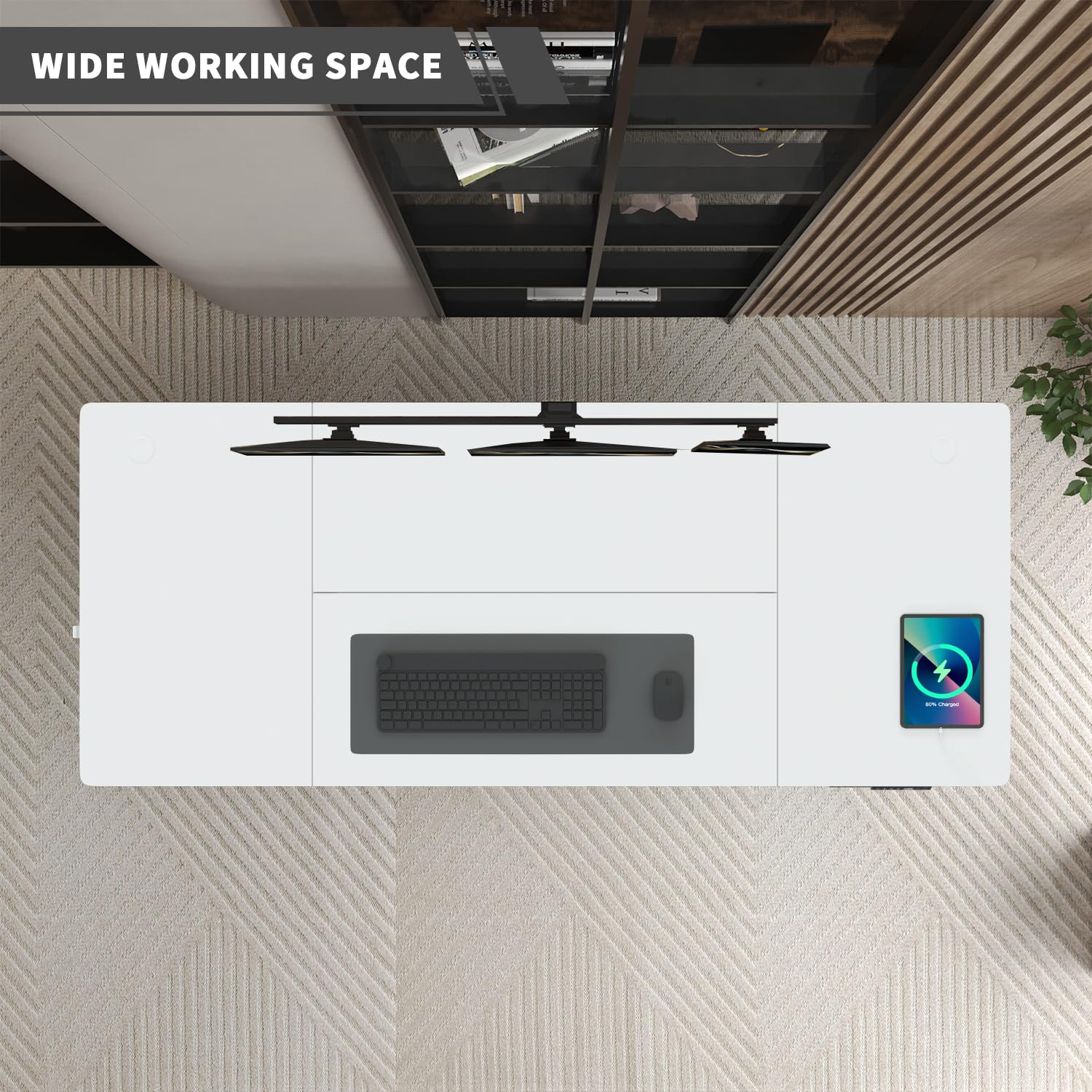 JUMMICO adjustable desk 180 x 80 cm with cable tray, Electric height adjustable standing desk with USB outlet, Computer desk, Ergonomic standing-sitting table, Office desk, White