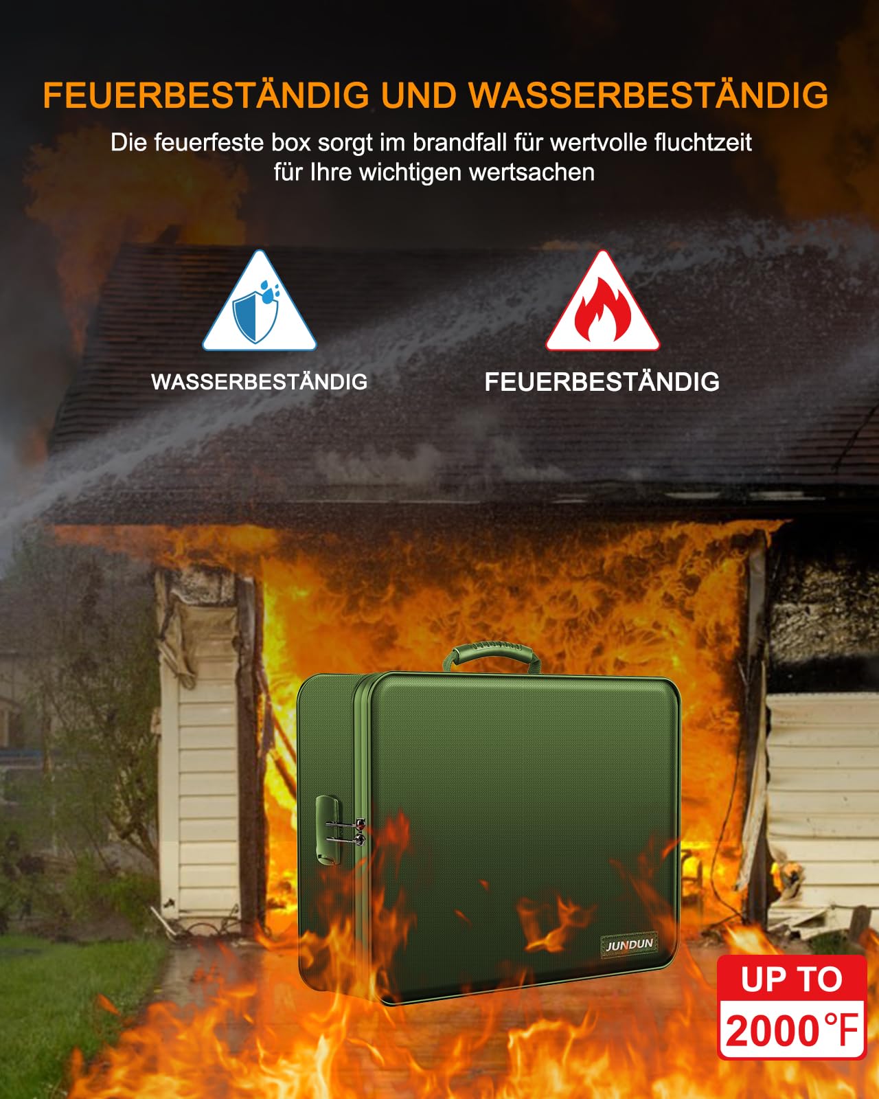 "Fireproof Storage Box: This fireproof document box can meet most application scenarios you can imagine, such as commuting to work, business negotiations, storage at home, car trips, etc., property titles, tax returns, diplomas, documents, laptops, and more."