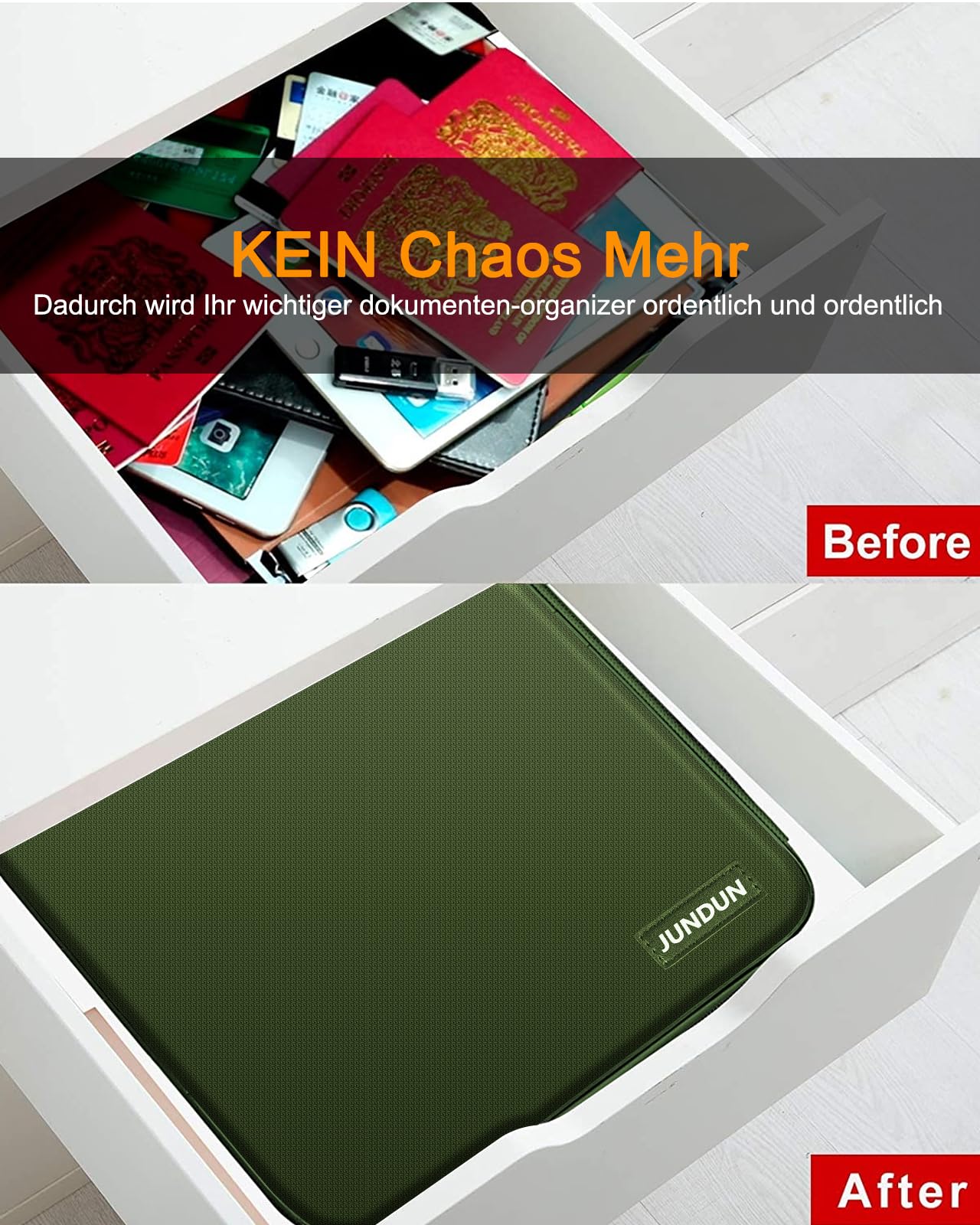 JUNDUN Document Organizer, Fireproof Document Bag with Lock, Document Storage Box with 7 Compartments, File Organizer, Portable Briefcase for Important Documents, File (Green)