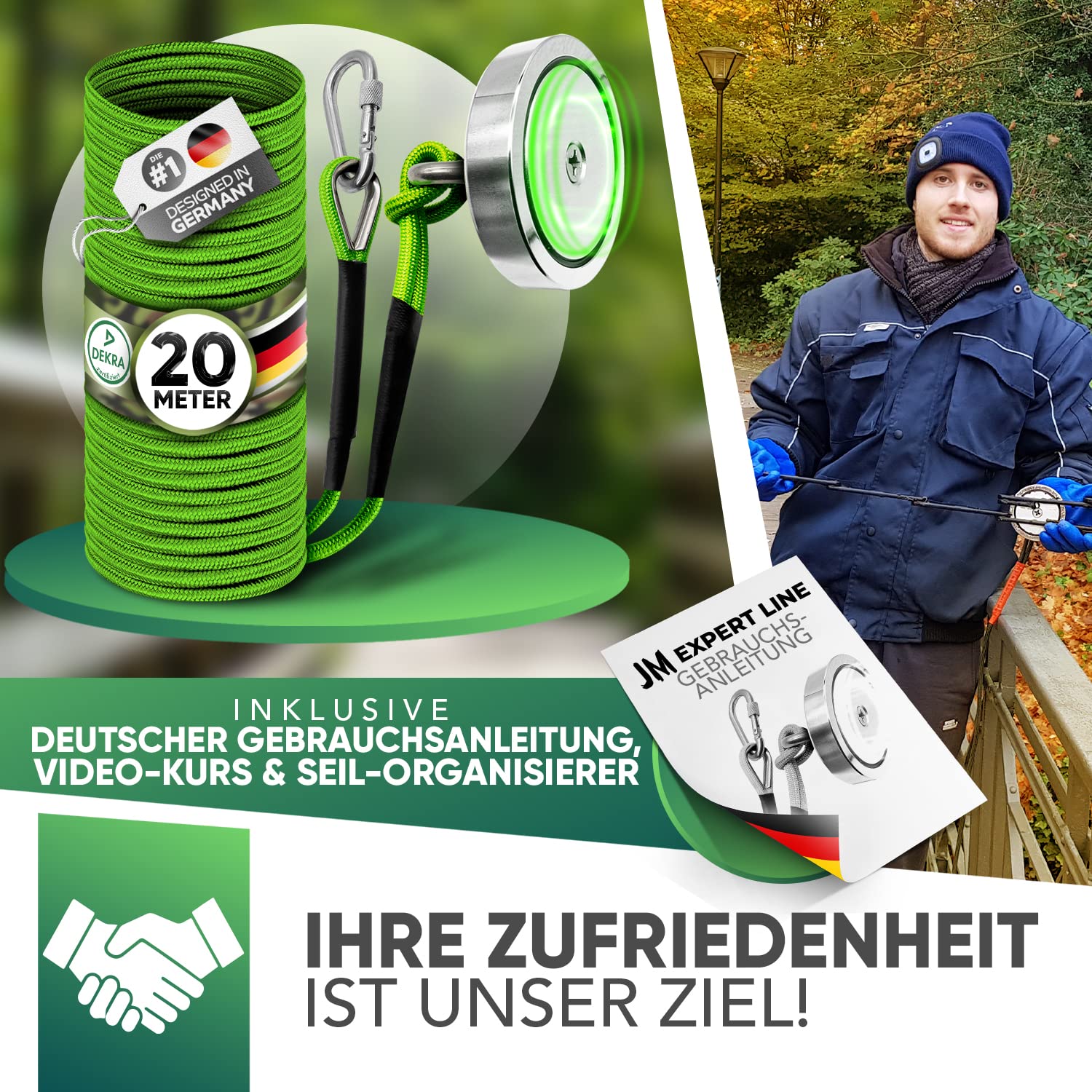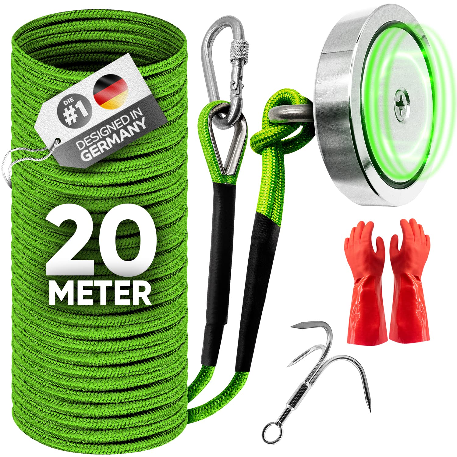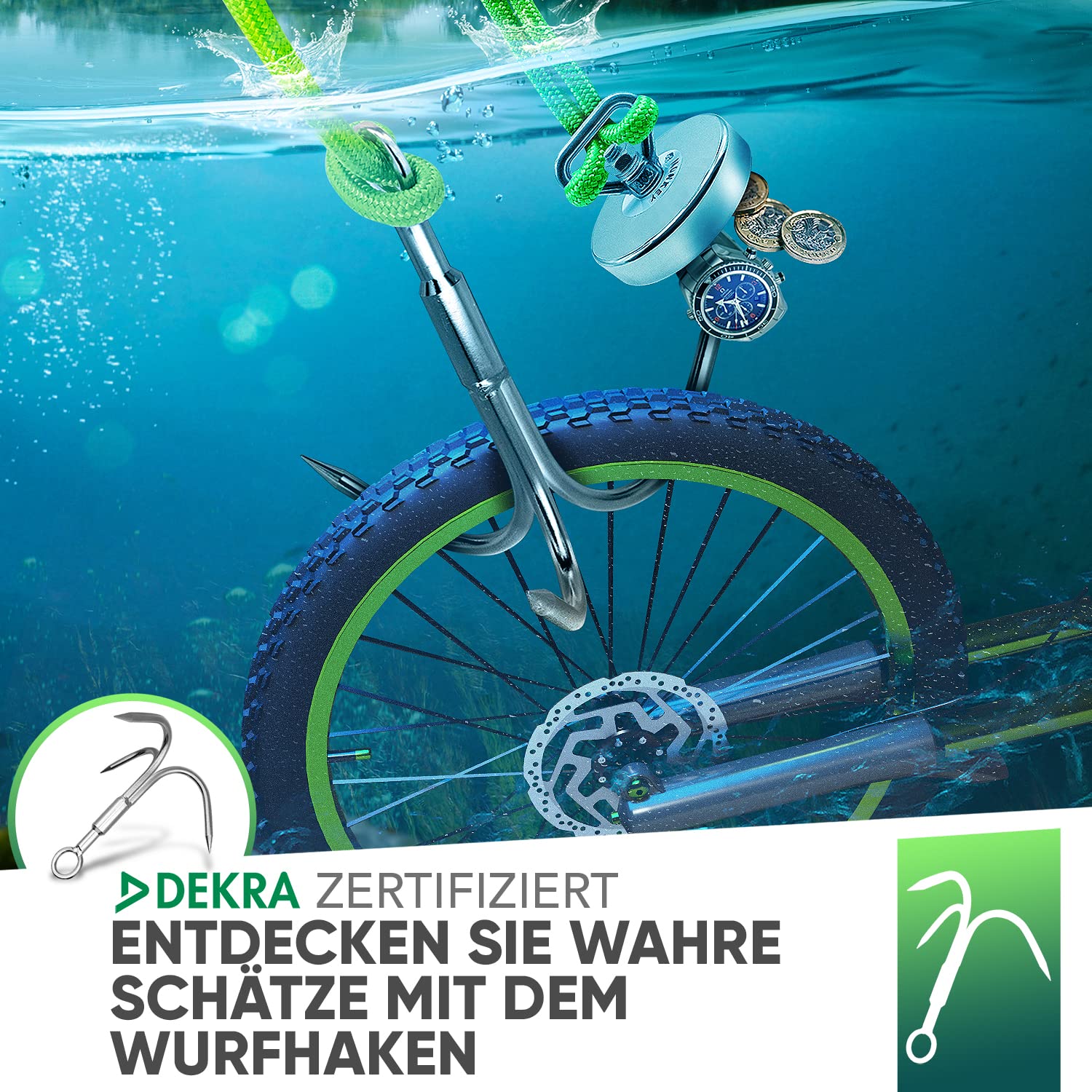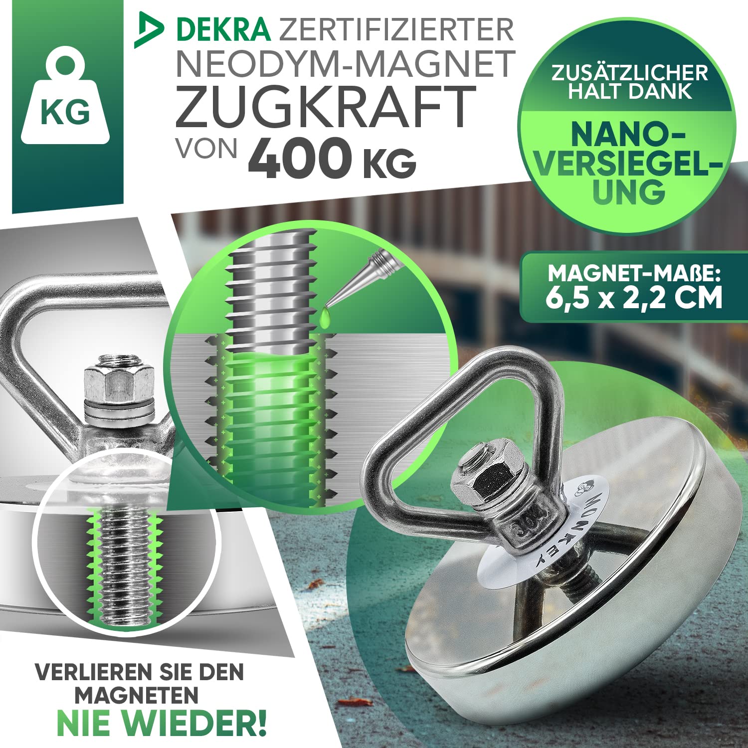 ["MAXIMUM SUCCESS - Thanks to the powerful magnet & robust nylon rope with LastsecureCore of our fishing magnets, you will safely find the next treasure while magnet fishing - DEKRA certified with 881 lbs. pulling force.",