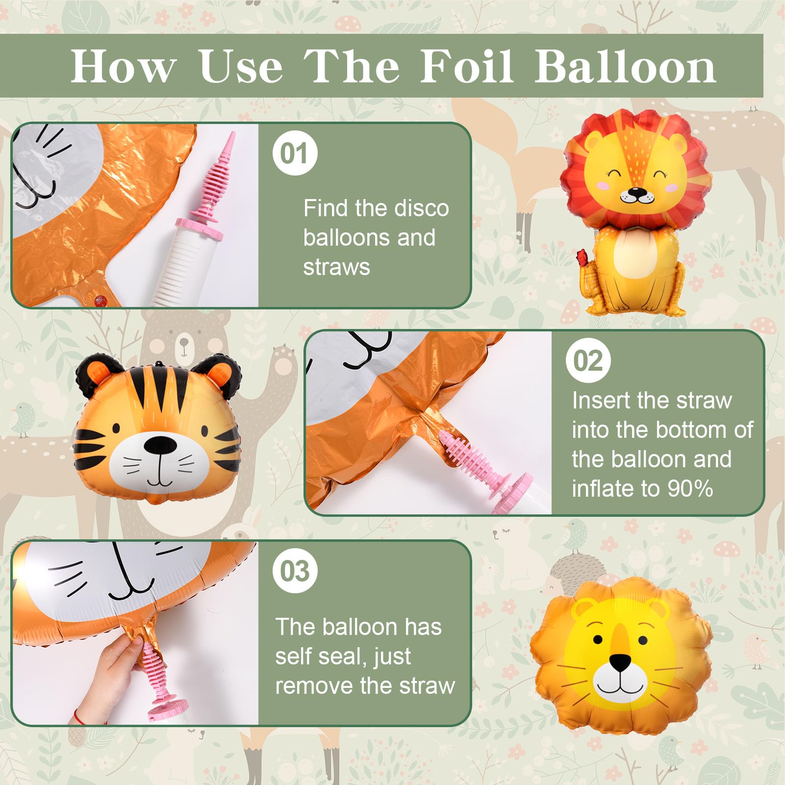 SAFARI BIRTHDAY DECORATION 1 YEAR: The simple design of the balloons makes inflating and assembling a breeze. With the included white ribbon, balloon dots, and special balloon chain with two holes, you can easily put together a decorative set in the form of a garland, bundle, or bow. Have fun creating party decorations with family and friends while creating happy and unforgettable memories.