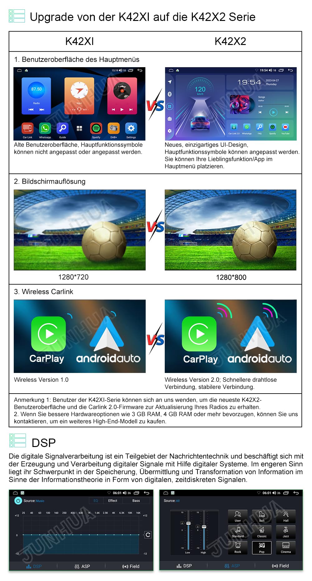 JUNHUA 9" Android 12 car radio with navigation 2G+32G replacement for SEAT Leon MK3 2013-2019, supports Wireless Carplay Android Auto, WiFi Bluetooth 5.1 GPS DSP steering wheel USB.