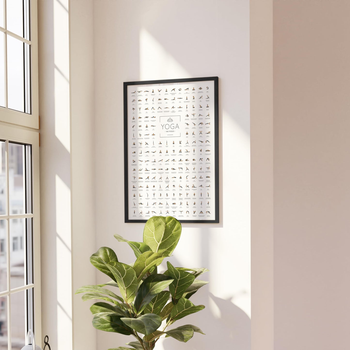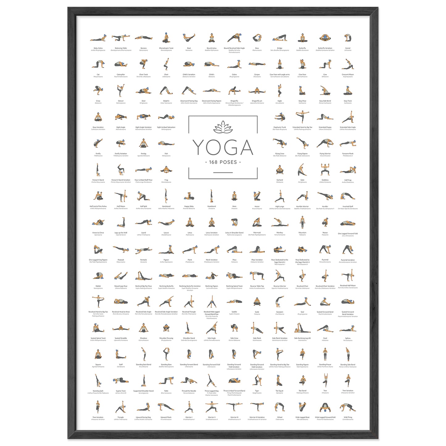 JUNOMI® Yoga Poster A2 size with black frame, yoga accessory for studios and home practice, perfect yoga gift idea, yoga exercises for beginners and professionals | with frame