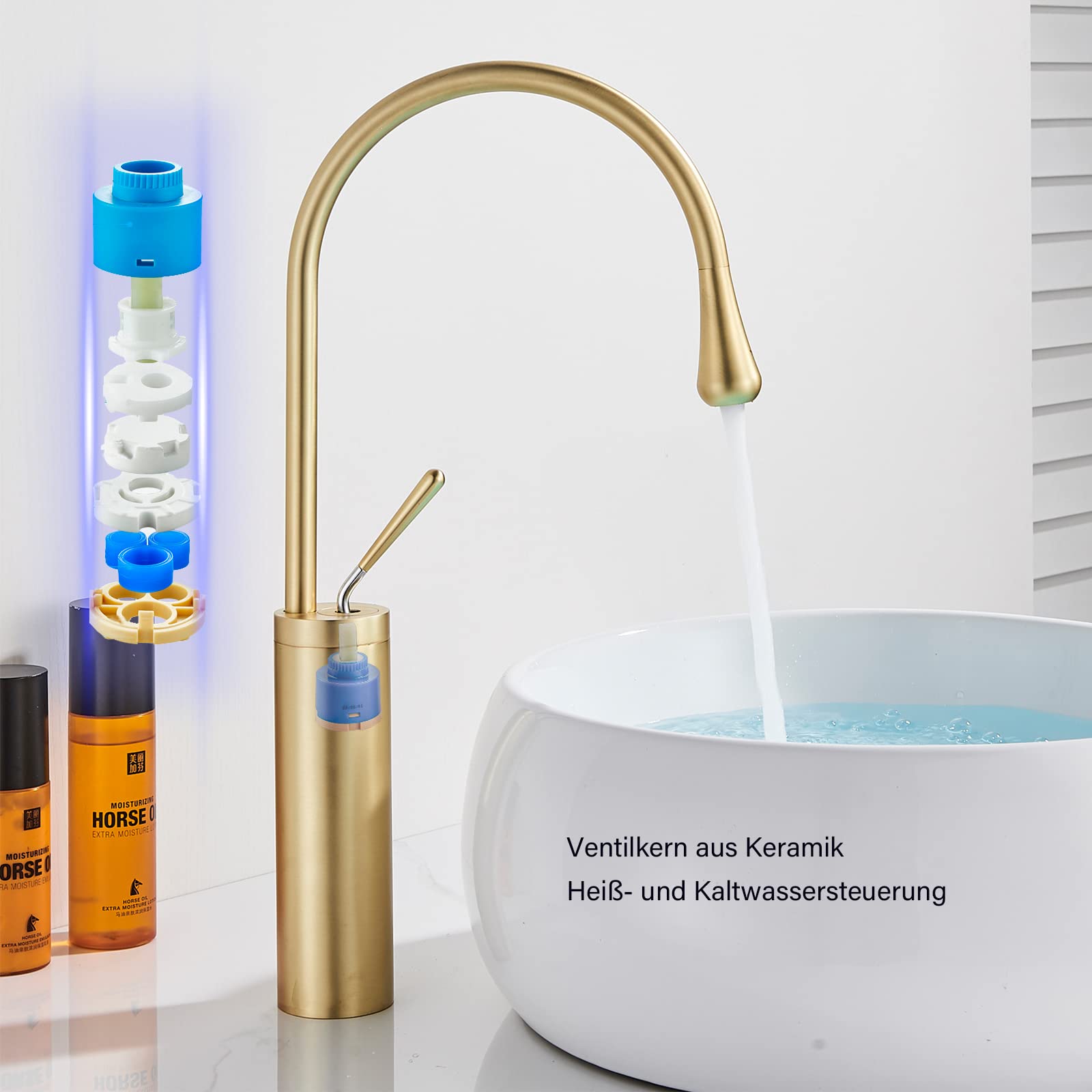 ["Messingmaterial】This black sink faucet is made of high-quality and durable brass, so the surface has excellent corrosion and antioxidant effects! High-quality materials and technologies ensure the product's lifespan. Warm- and cold water system】The single lever handle makes it easy to adjust the water flow and temperature. The faucet is compatible with most sinks. Waterfall faucet】This waterfall mixer tap provides you with a soft and gentle water flow, gentle and quiet, prevents splashing water, keeps your sink dry, ideal for daily bathroom tasks. Easy to install】It can be easily connected to all common cold and hot water pressure systems. You can follow the detailed installation instructions, only a few steps are required to easily attach the faucet to the sink. Hassle-free customer service】If you have any questions during use, please contact us at your leisure."]