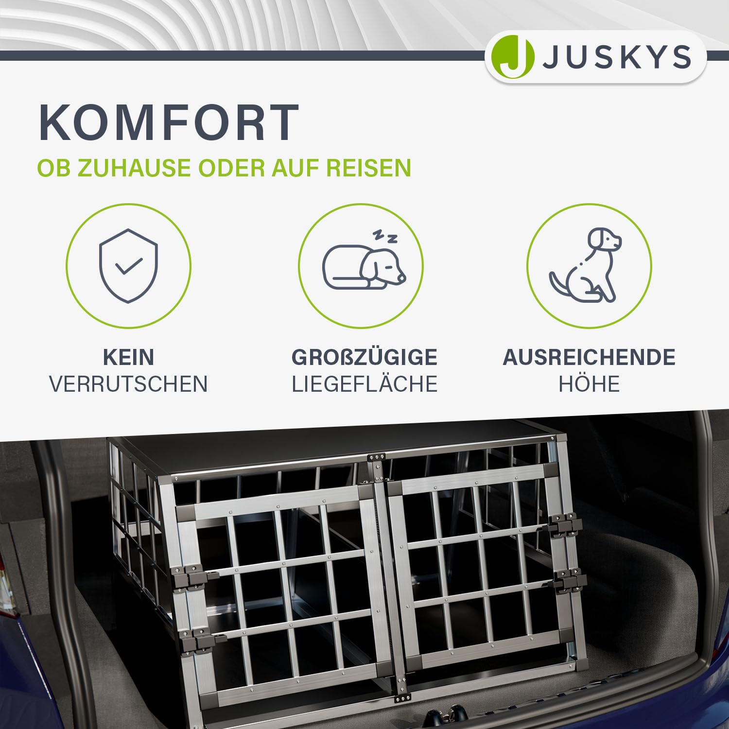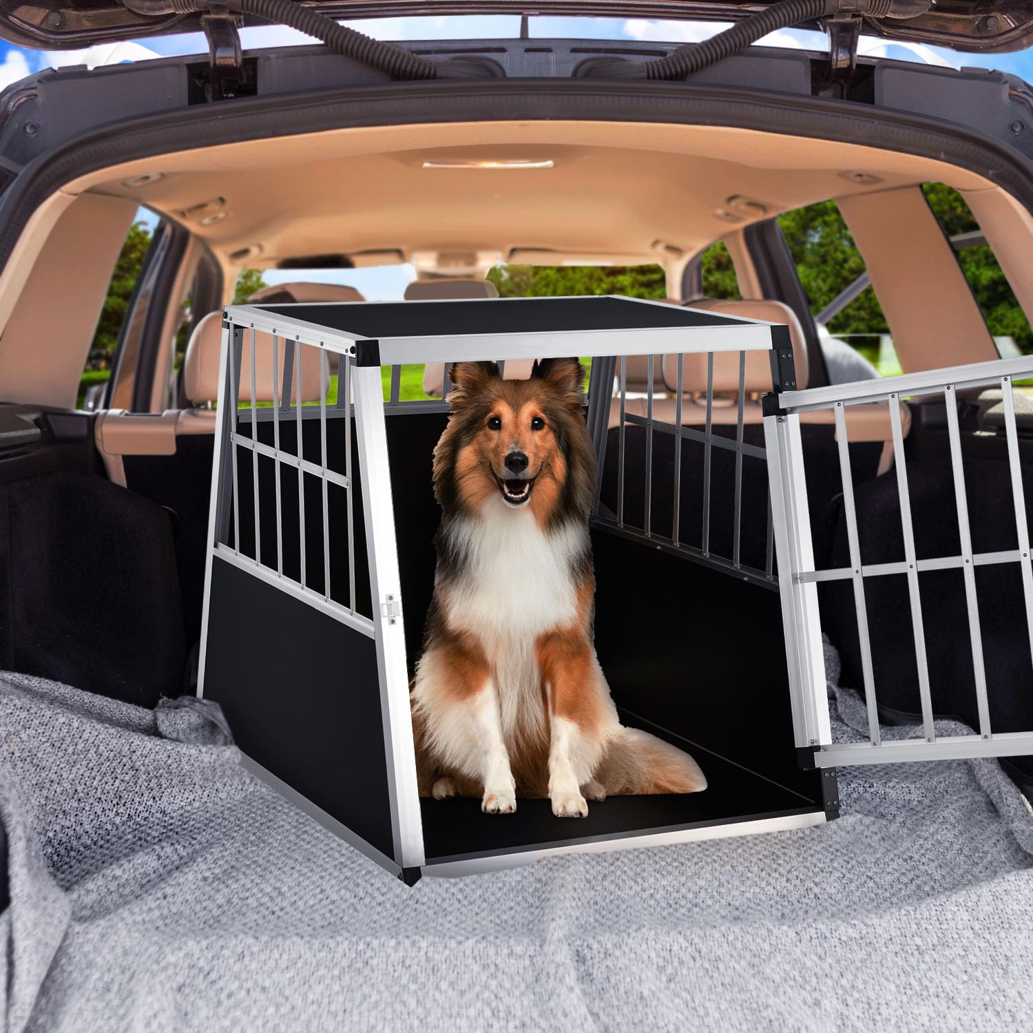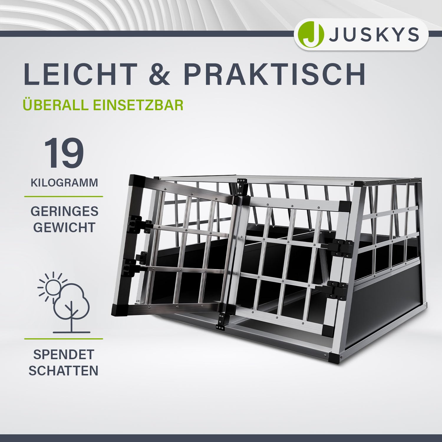 Juskys aluminum dog transport box L-X - 89x70x51 cm - car dog box sturdy & easy to clean - grid doors lockable - aluminum travel box for dogs