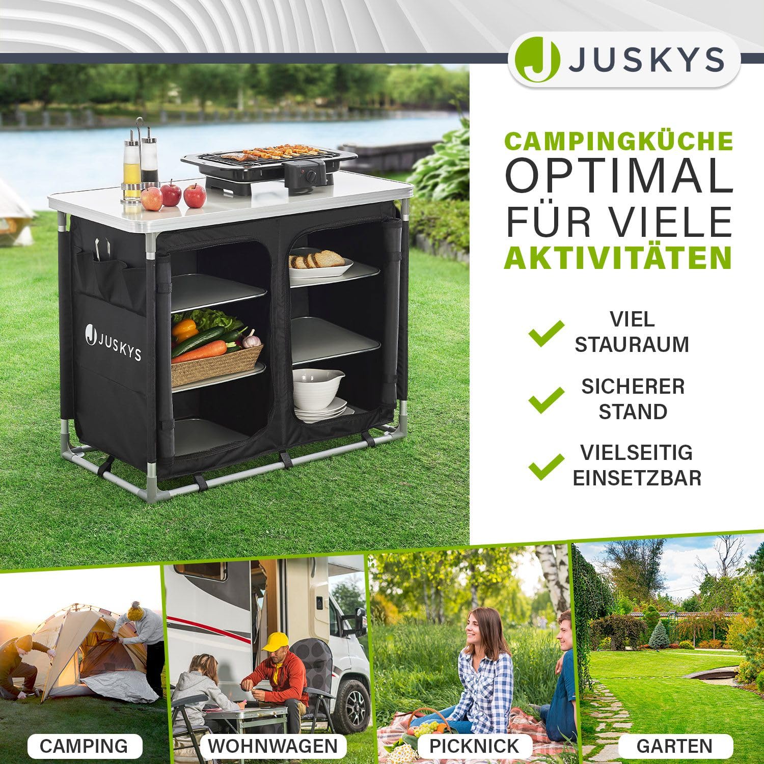 Juskys camping kitchen foldable with carrying bag - outdoor camping kitchen foldable camping cabinet - foldable kitchen box - black