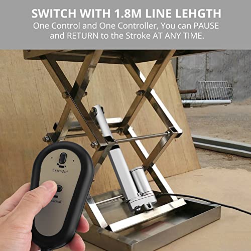 ["【 100mm Linear Actuator Kit 】The linear actuator is made of an aluminum alloy and features a large drive unit capable of providing pressure and pulling forces of up to 750N / 160lbs. Low noise design, less than 42dB. IP54 protection against dust, water, and corrosion.","【 10mm/s Fast 】10mm/s. Input voltage: 12V DC. Rated power: 20W, 30W max. Stroke length: 100mm (4\"); retracted length: 205mm (8\"); extended length: 305mm (12\"). Maximum current consumption: 4A. Linear actuators are actuators that generate linear motion and can be used in any application where an object needs to be moved in a straight line. Move other objects for pushing, pulling, lifting, and lowering.","【 Built-in Limit Switch and Automatic Shutdown 】Built-in limit switch, no setup required, simply plug and play. Slide rail On each side, there is a limit switch. When the telescopic rod runs up or down, the power supply is automatically cut off.","【 DC Motor with Self-locking Feature 】The push rod is driven by a DC motor with screw drive, the telescopic rod can only be retracted without rotation. Interrupt the power supply, it can be stopped with self-locking at any position.","【 Note 】 The product comes with a plug, a switch, and an adapter that can be directly used without the need to purchase additional accessories."]