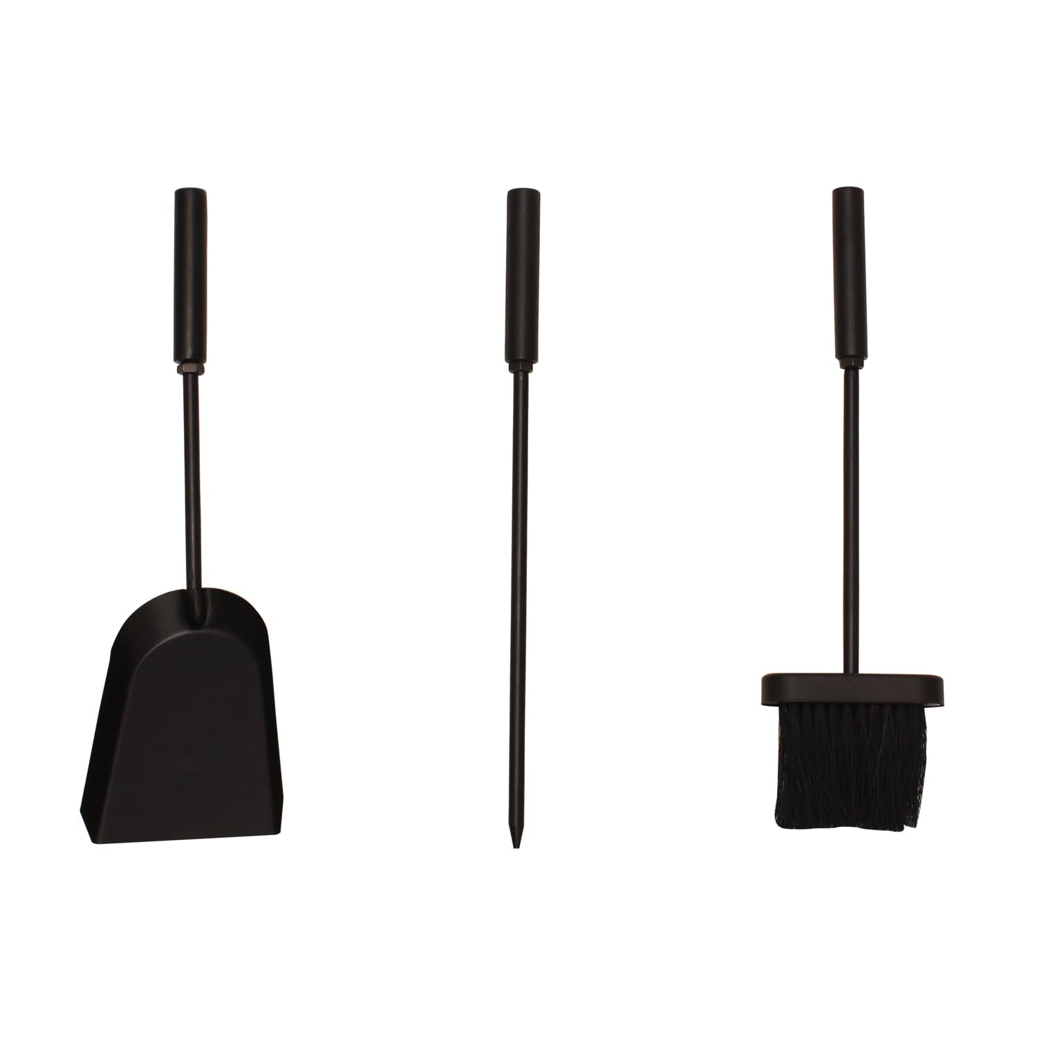 JVL Belmont modern fireplace tool set, Steel, black, 23 x 15 x 45 cm, 3 pieces