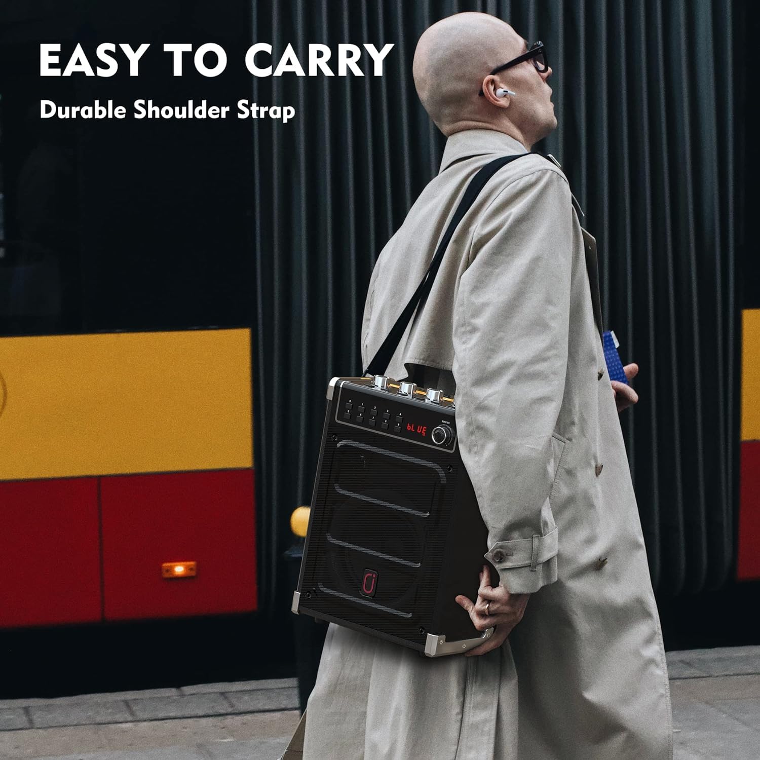 ["Karaoke machine: Includes two wireless microphones for your home karaoke. Easily connect with Bluetooth, AUX, TF/USB. Can record audio, stream through microphone with inserted USB/TF card. Our amazing karaoke machines are 100% portable with a strap. Suitable for all ages to rock out anywhere and everywhere.","【Bluetooth 5.0】The latest Bluetooth 5.0 chip for wireless streaming ensures instant pairing, faster connection speeds, more stable signal transmission, and lower power consumption. Compatible with Android phones, TV, iPad, tablet, PC. Perfect for family gatherings, indoor meetings, classroom teaching, public speaking, and small stage performances.","Multifunctional speaker: Used as a karaoke machine, music player, PA system, FM radio, etc. Ideal choice for home karaoke. 1/8 inch (3.5mm) AUX input for non-Bluetooth devices, built-in AM/FM radio. Can record audio streamed through microphone with inserted USB/TF card. REC button allows recording of voice.","Flashing DJ lights & Treble/Bass: Our product creates a light show, enhancing performance for yourself and your fans, becoming the karaoke king! LED lights on front create dazzling light display, adding colorful and cheerful effect. Independent treble/bass adjustment makes music loud, clear, strong, enhances voice without distorting audio, even at higher volumes.","TWS mode: Connect two stereo systems for True Wireless Stereo via Bluetooth. Strengthens and balances bass. High and low tone separation technology delivers optimized sound, clear and vibrant."]