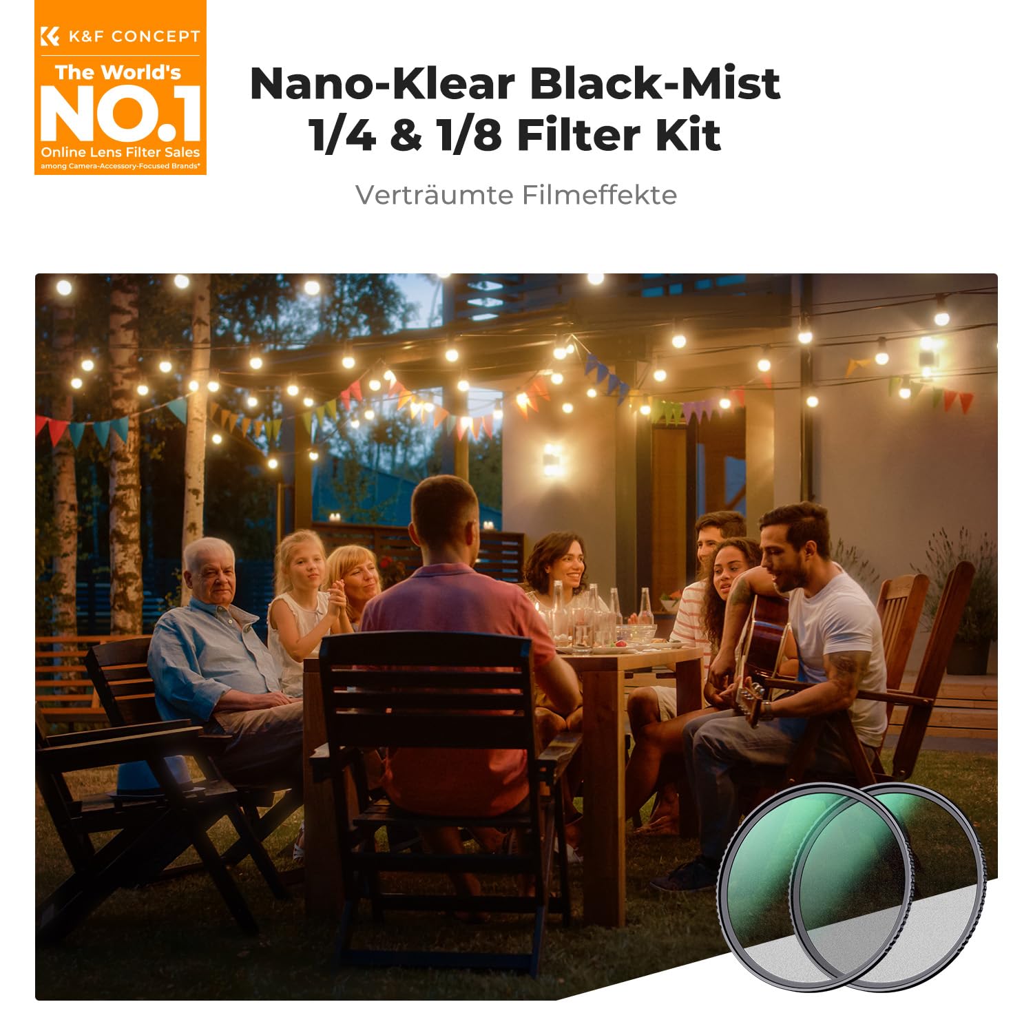 K&F CONCEPT Filter Black-Mist 1/4 & Black-Mist 1/8 Filter, 72mm Black Promist Filter Sets Effect Filter Black Diffusion Effect Filter (Nano Clear)