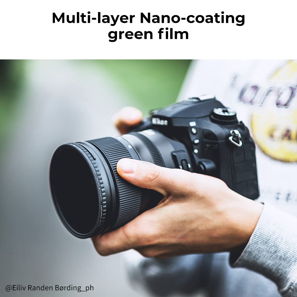 ["There is a rotation stop and no overlap when setting from ND32 to ND152, so the X pattern does not actually appear. The ND filter is very easy to adjust to different ND levels and they are very well labeled, so you always know exactly which level you are on. Note: New and old packaging are randomly shipped","【Ultra High Imaging】Using double-sided Japanese optical glass and double-sided multi-layer reinforcement coating to reduce light reflection and glare on the filter surface, prevent stray light from entering, reduce useless reflection from non-metallic surfaces, ensuring ultra-high-definition imaging","【Multilayer Coating】28-layer coating, waterproof & oil-resistant & scratch-resistant coating, effectively prevents scratching of the lens surface, easy to carry and clean, and prevents lens fogging during long-term storage","【No Vignetting】The frame is made of aircraft aluminum with an ultra-wide angle structural design and a thickness of only 7.4mm, making it convenient for you to avoid vignetting at the wide angle end of the 16mm end","【CNC Trapezoidal Frame】The surface of the mirror frame is designed with a CNC trapezoidal pattern, increasing rotation friction and convenient for installation and removal","* K&F CONCEPT is the world's No.1 brand in terms of lens filter online sales volume among camera-accessory-focused brands. Source: Euromonitor, 2024 data."]