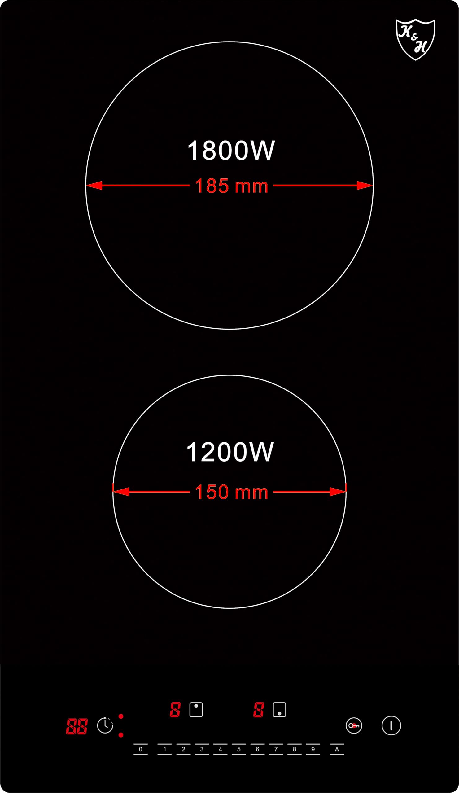 "✔️3000 WATT POWERFUL ELECTRIC COOKTOP✔️ SENSOR Touch-Control control in 9 power levels per cooking zone with a max. power of 1800Watt (top) and 1200Watt (bottom)."